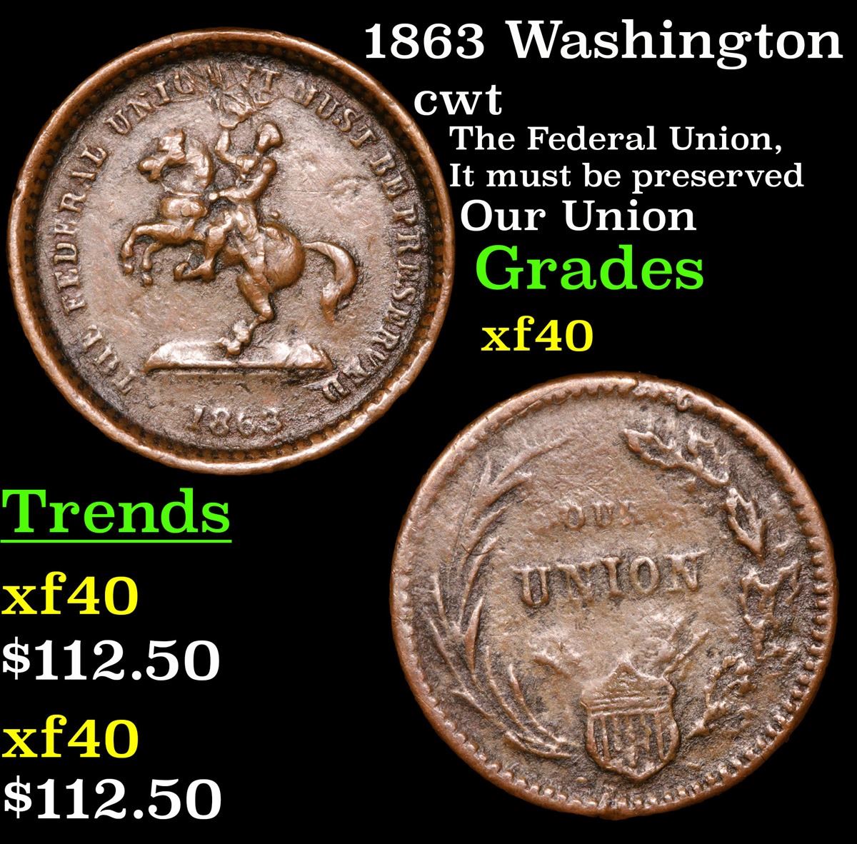 1863 Washington The Federal Union, It must be preserved Our Union Civil War Token 1c Grades xf.