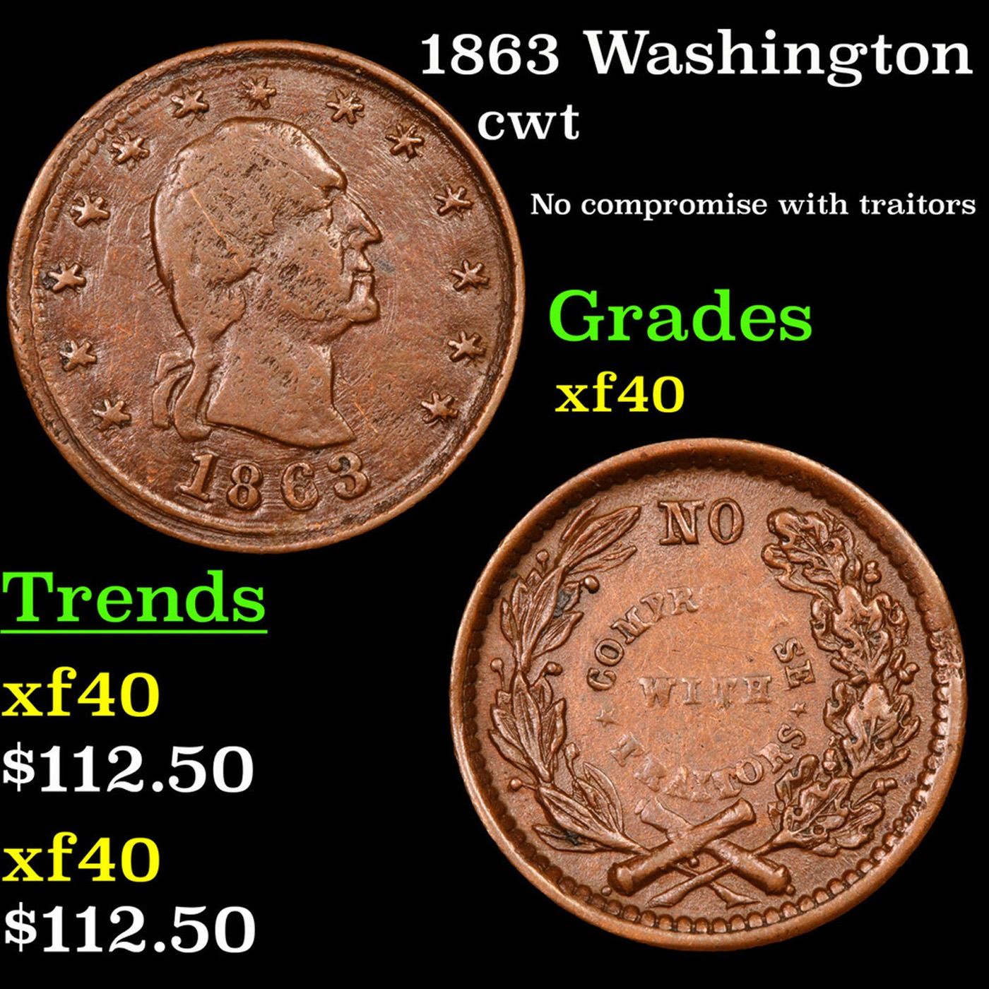 1863 Washington Civil War Token 1c Grades xf.