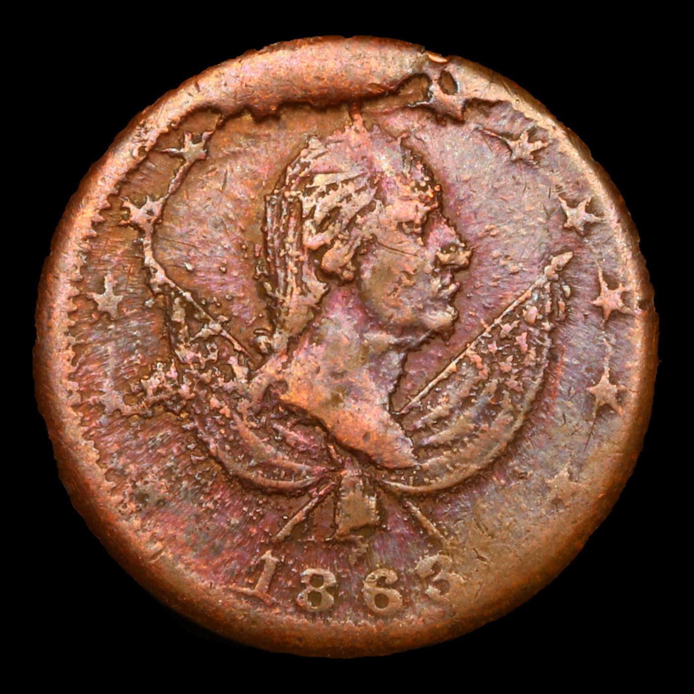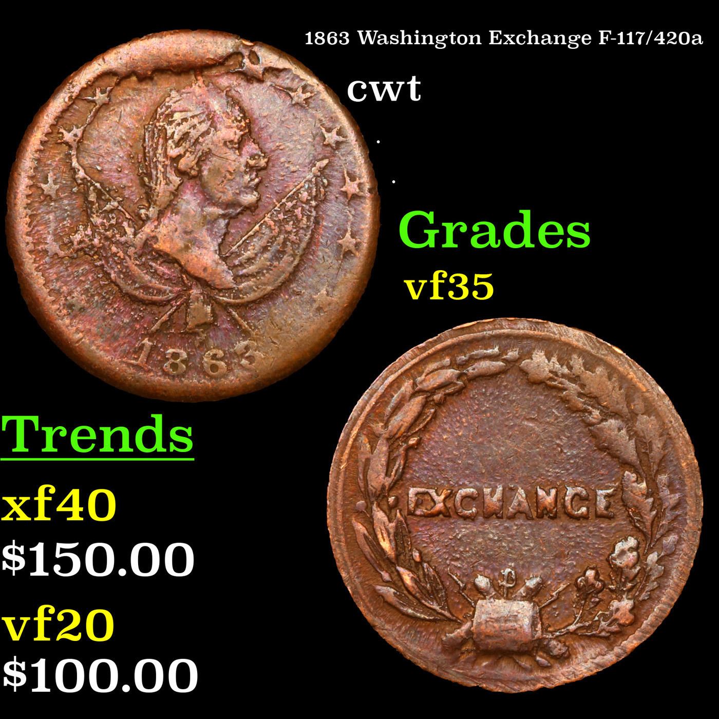1863 Washington Exchange F-117/420a Civil War Token 1c Grades vf++.