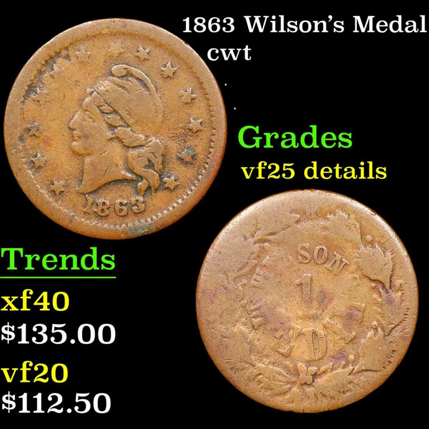 1863 Wilson's Medal Civil War Token 1c Grades vf details.