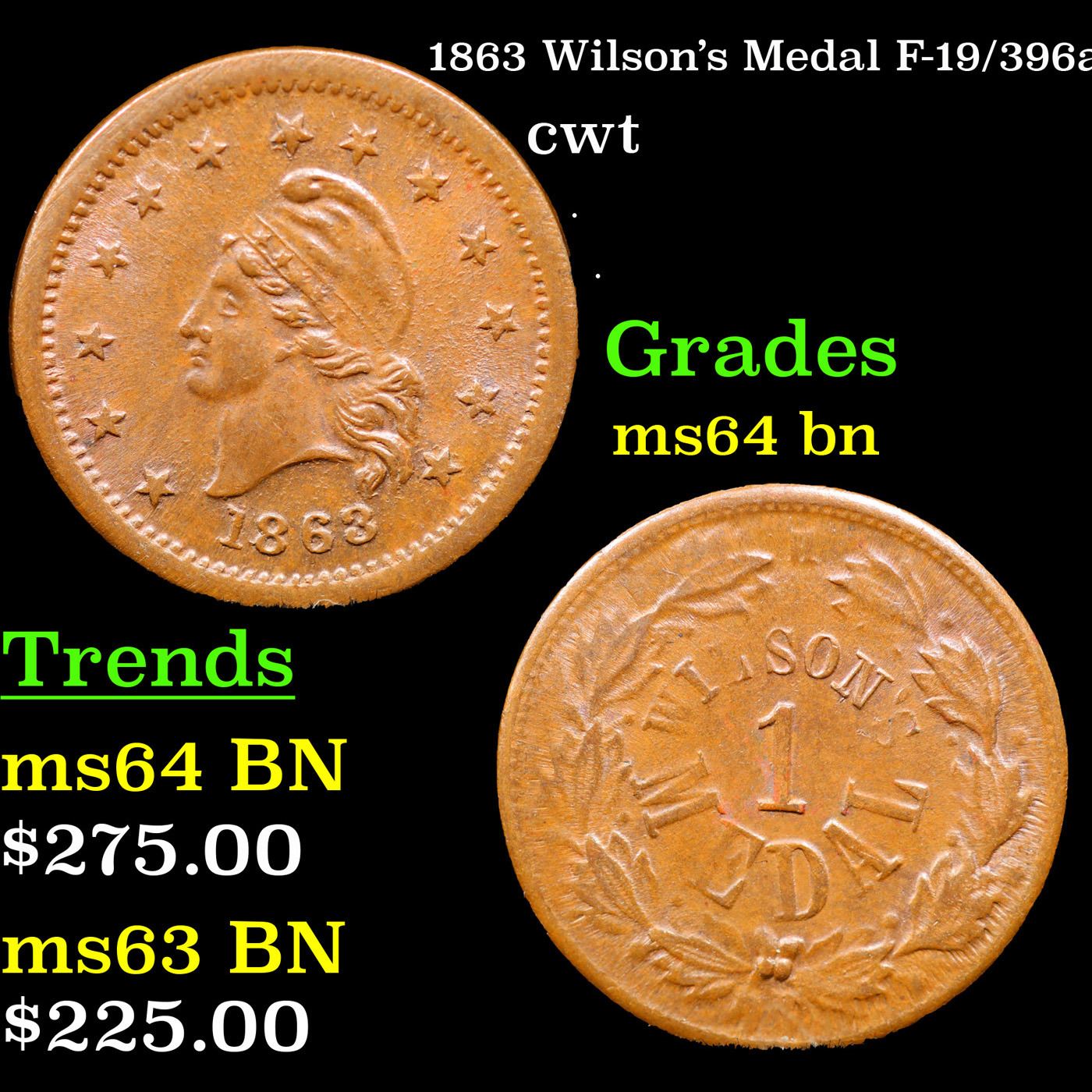 1863 Wilson's Medal F-19/396a Civil War Token 1c Grades Choice Unc BN.