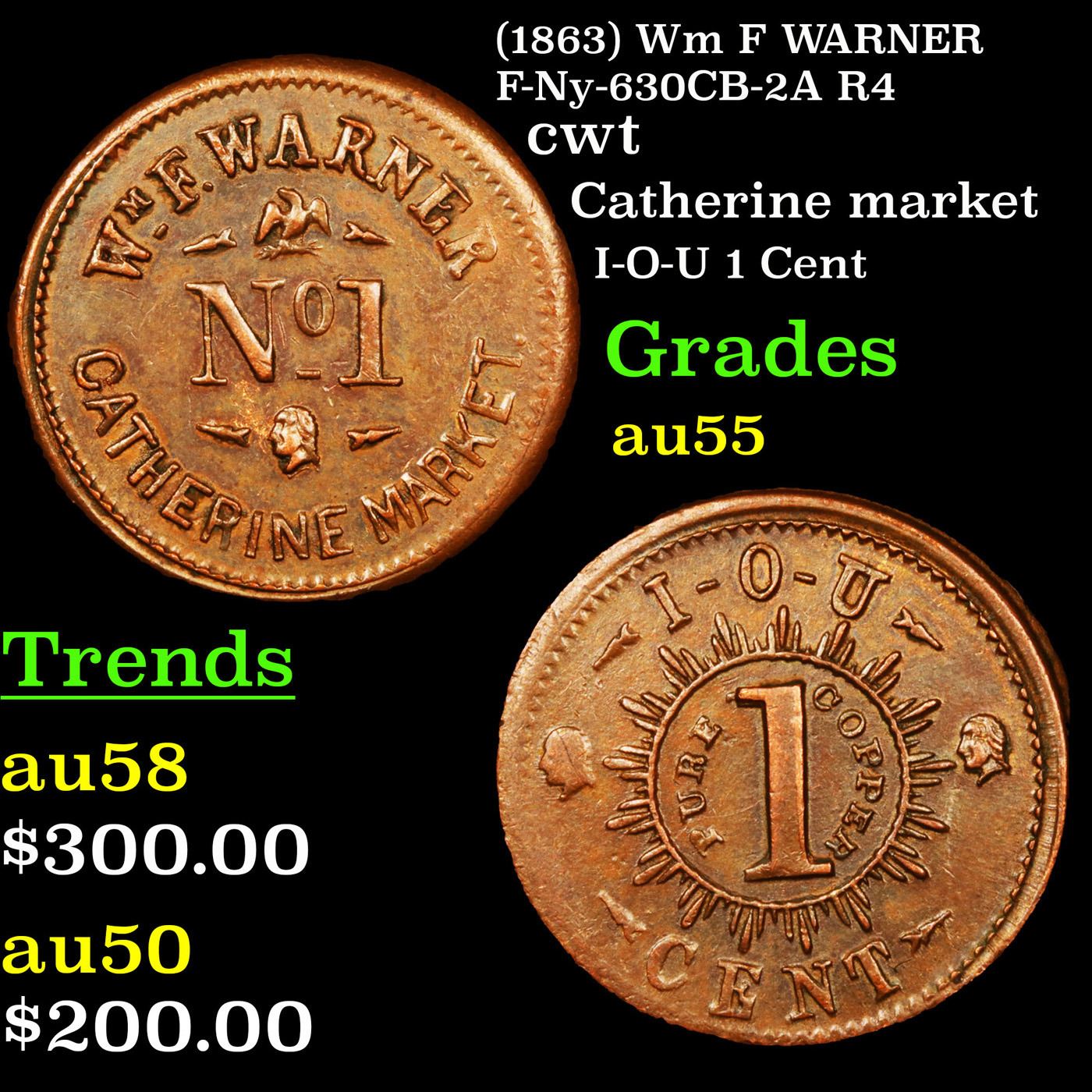(1863) Wm F WARNER F-Ny-630CB-2A R4 Civil War Token 1c Grades Choice AU.
