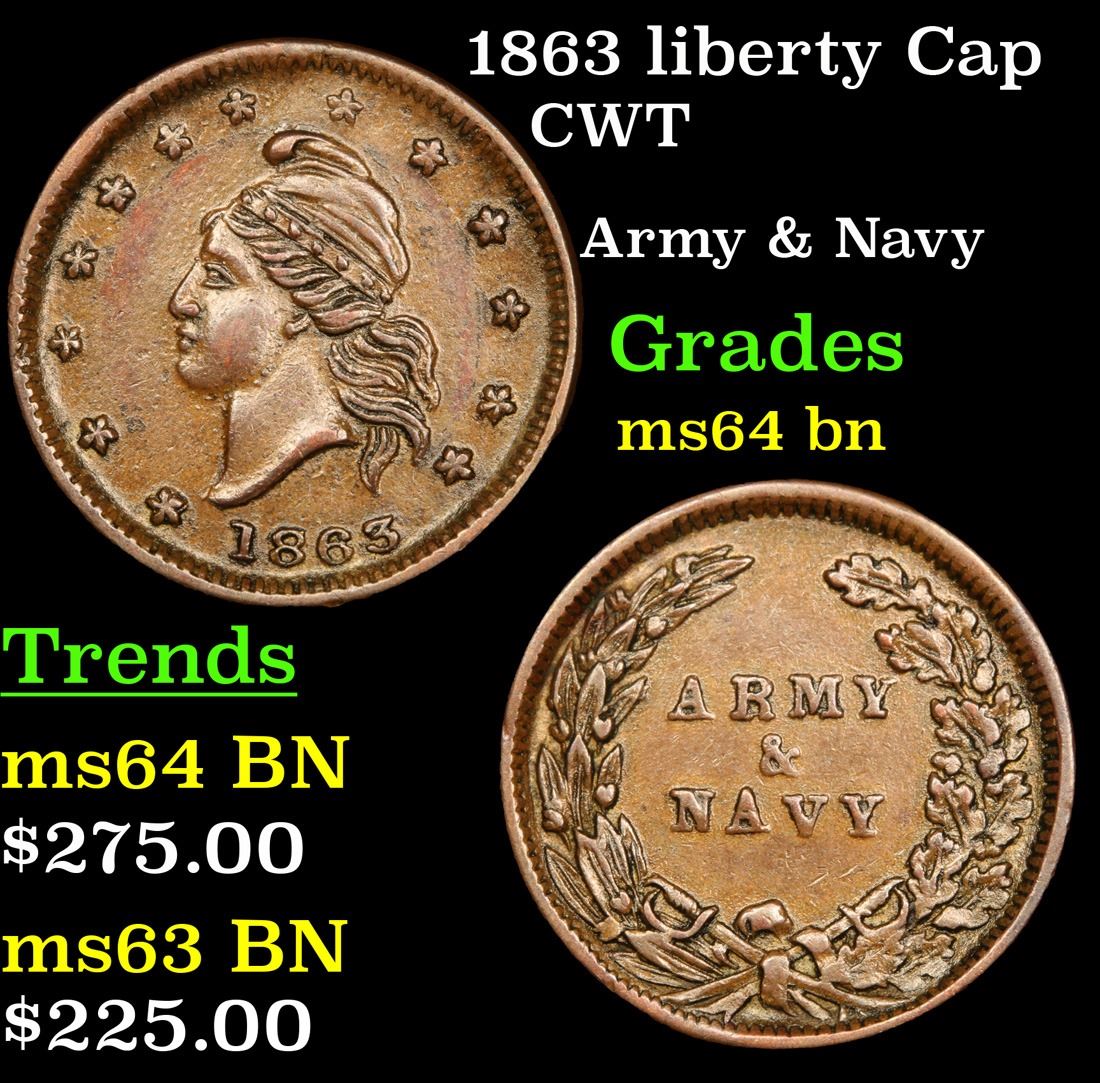 1863 liberty Cap Army & Navy . Civil War Token 1c Grades Choice Unc BN. A Corey's Pick, Bid to Win Coin