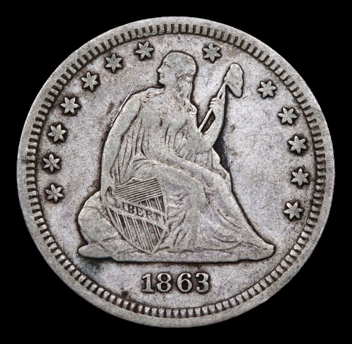 1863-p Seated Liberty Quarter 25c Grades vf++.