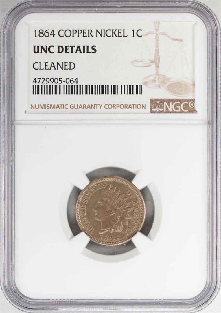 One 1864 1 Cent Copper Nickel Coin NGC UNC Details. NGC Certified.