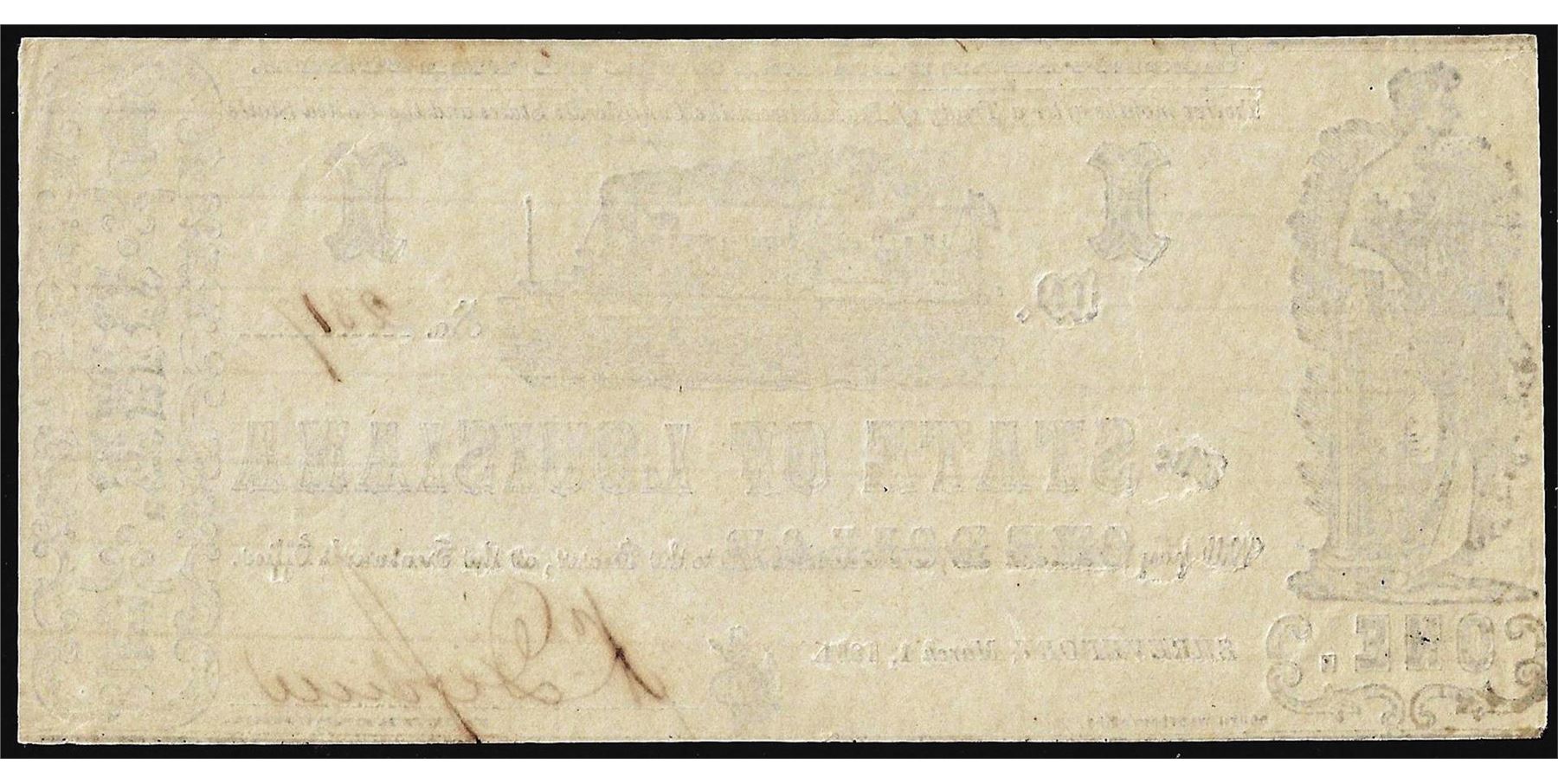 One 1864 $1 State of Louisiana Obsolete Note.