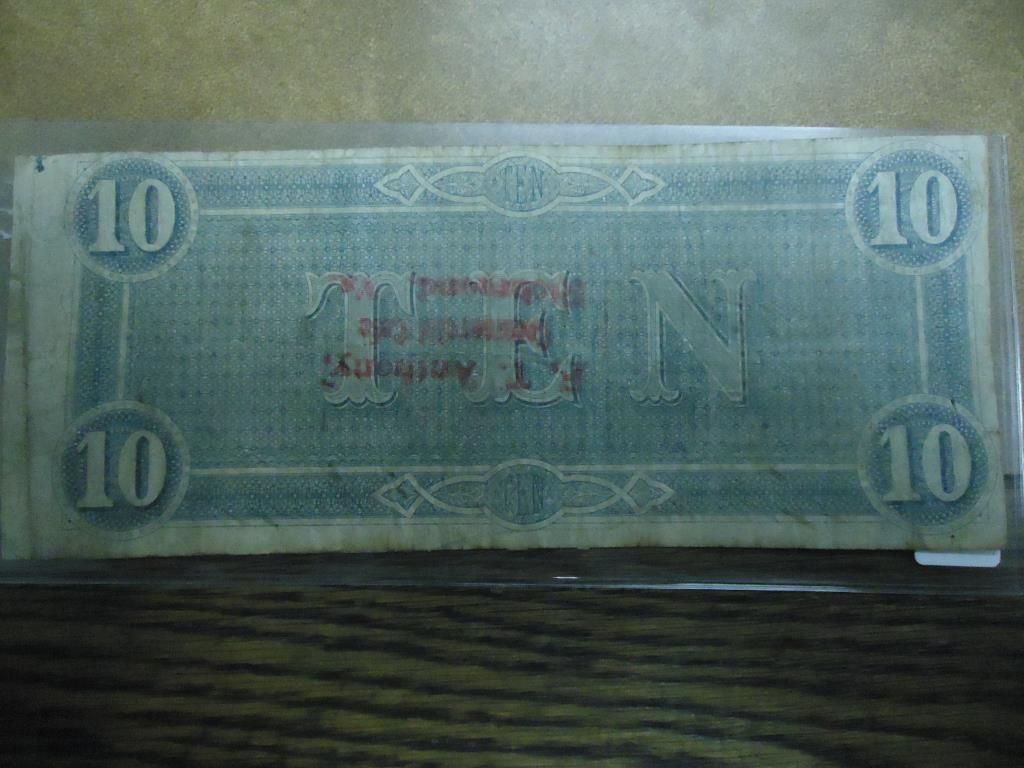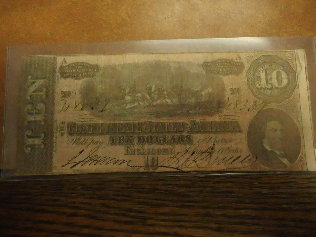 1864 $10 CONFEDERATE STATES OF AMERICA CURRENCY