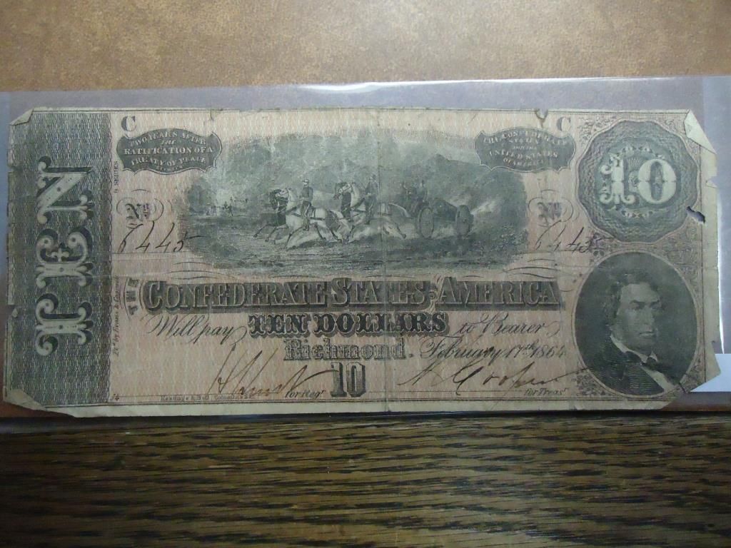 1864 $10 CONFEDERATE STATES OF AMERICA NOTE