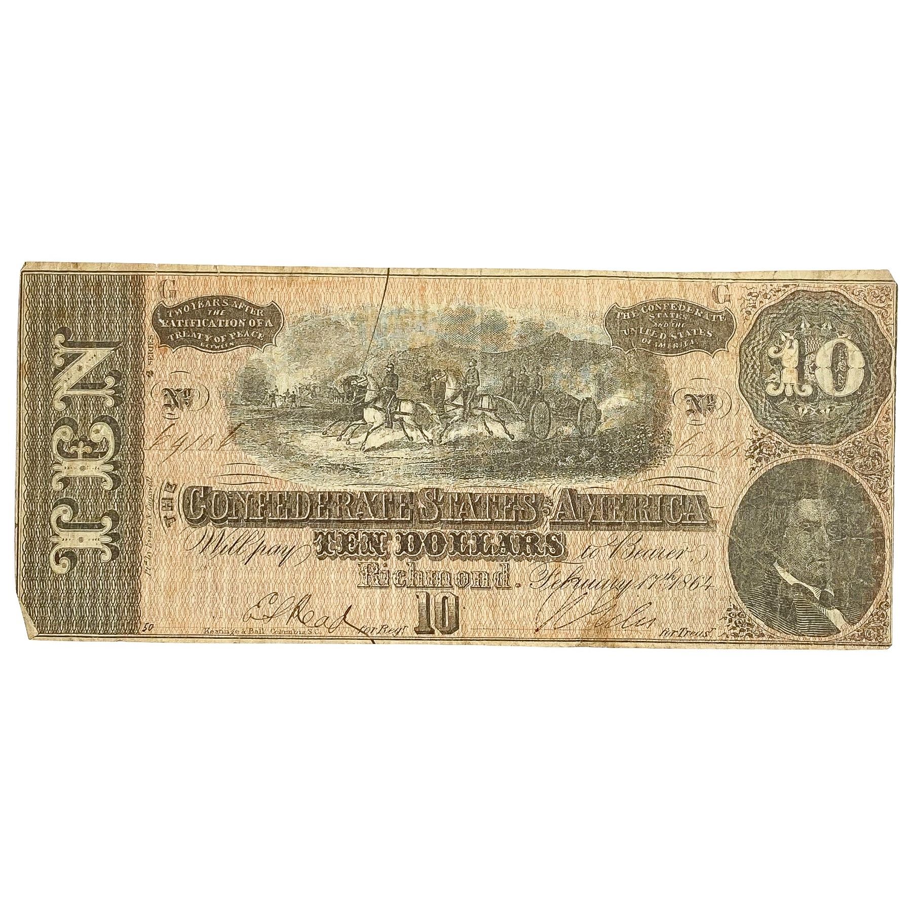 1864 $10 CSA Richmond Large Note
