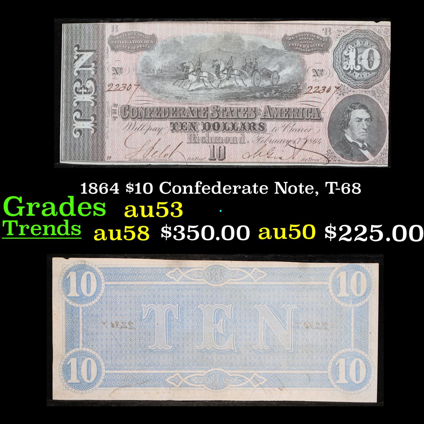 1864 $10 Confederate Note, T-68 Grades Select AU
