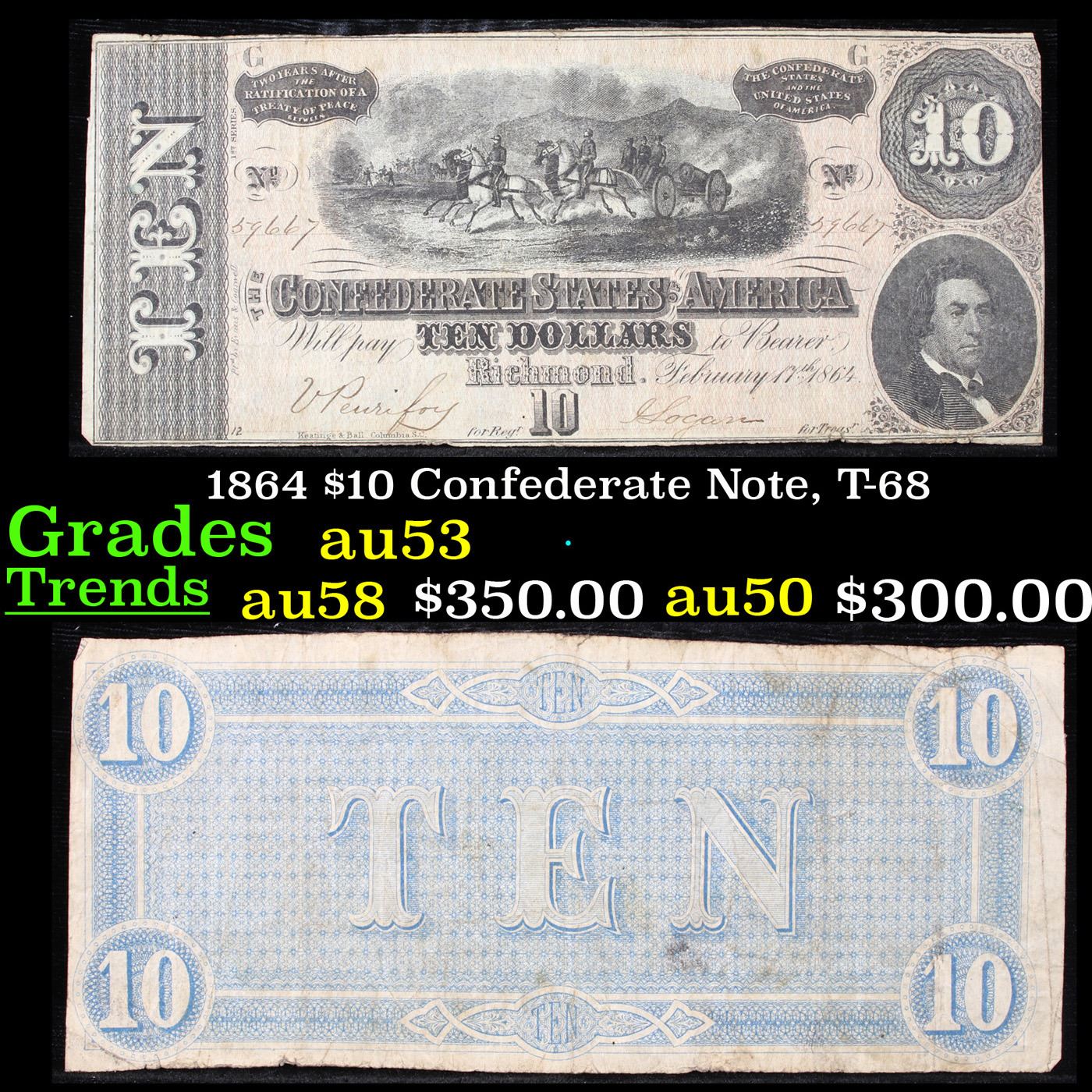 1864 $10 Confederate Note, T-68 Grades Select AU