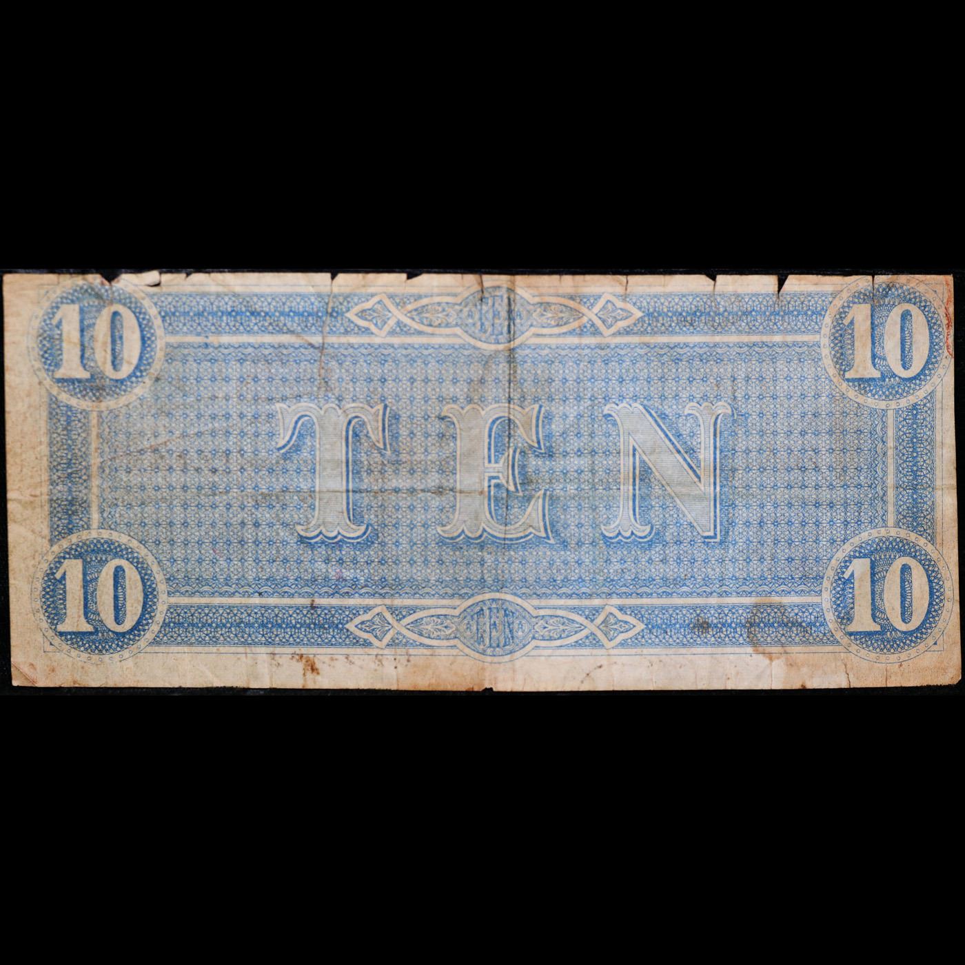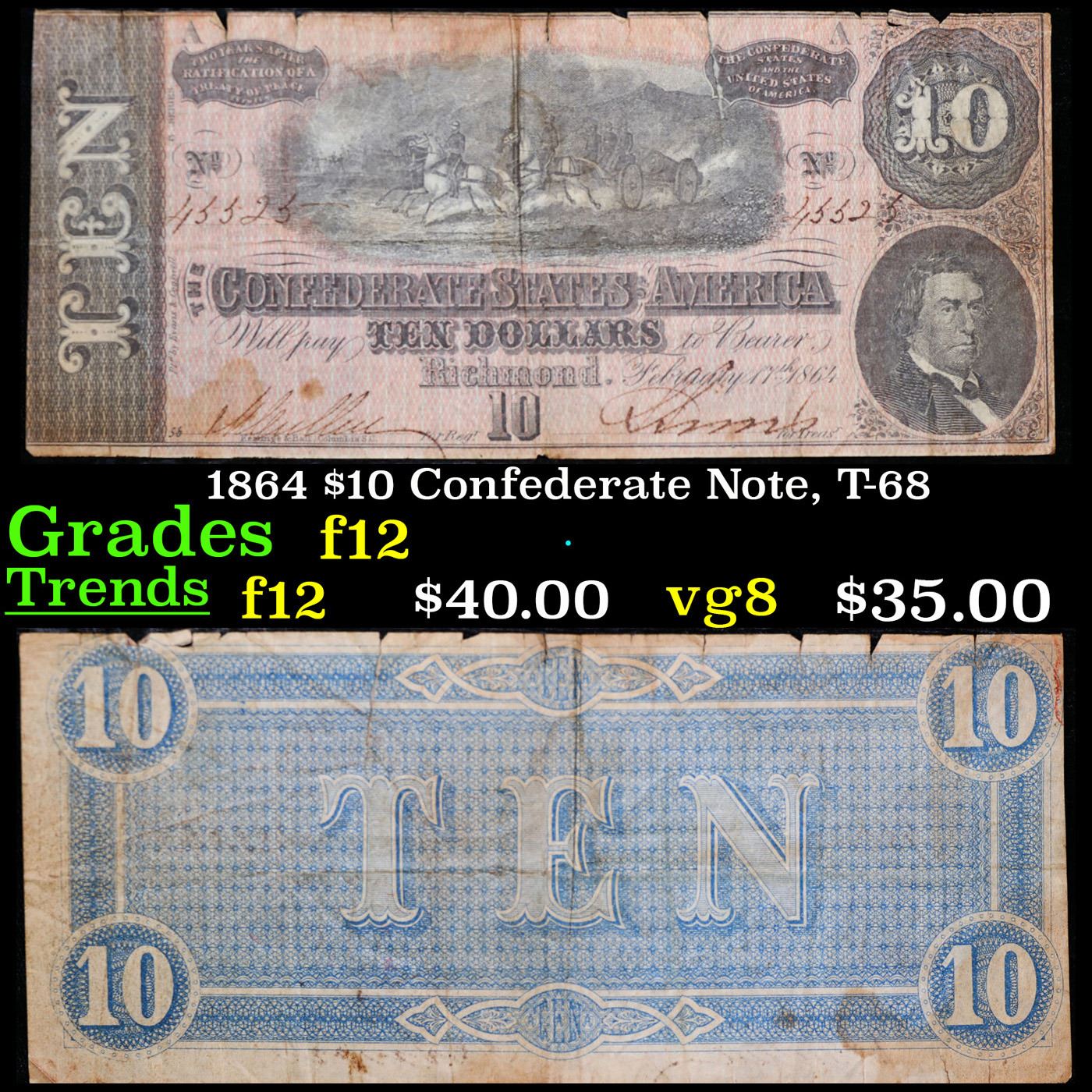 1864 $10 Confederate Note, T-68 Grades f, fine