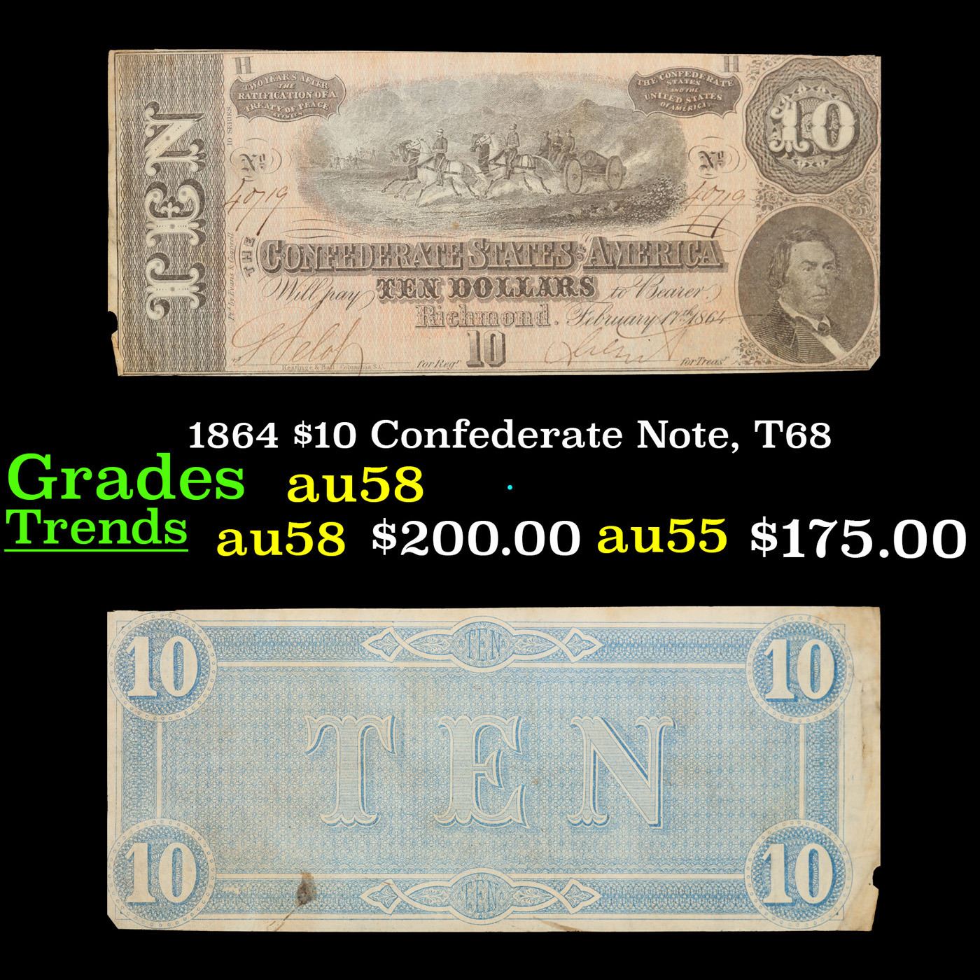 1864 $10 Confederate Note, T68 Grades Choice AU/BU Slider