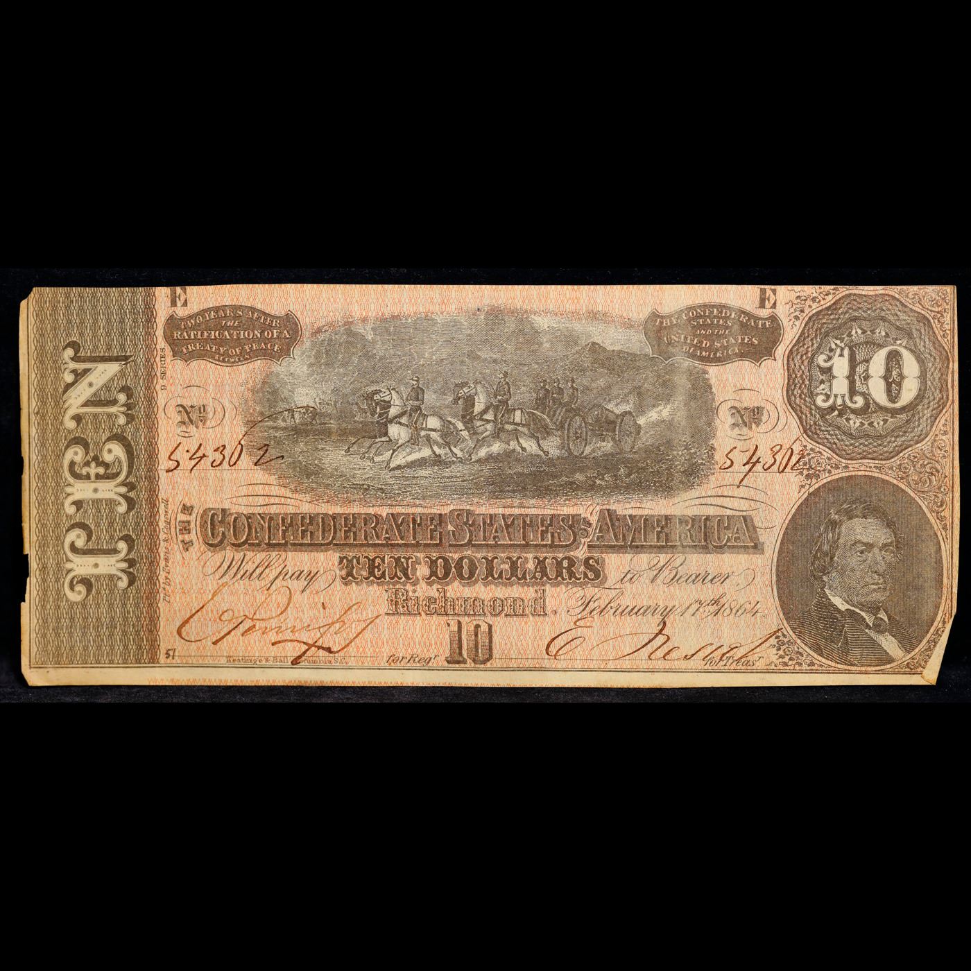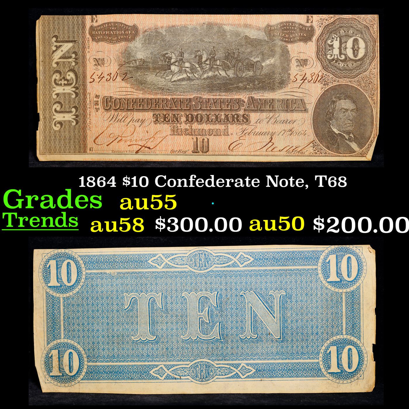 1864 $10 Confederate Note, T68 Grades Choice AU