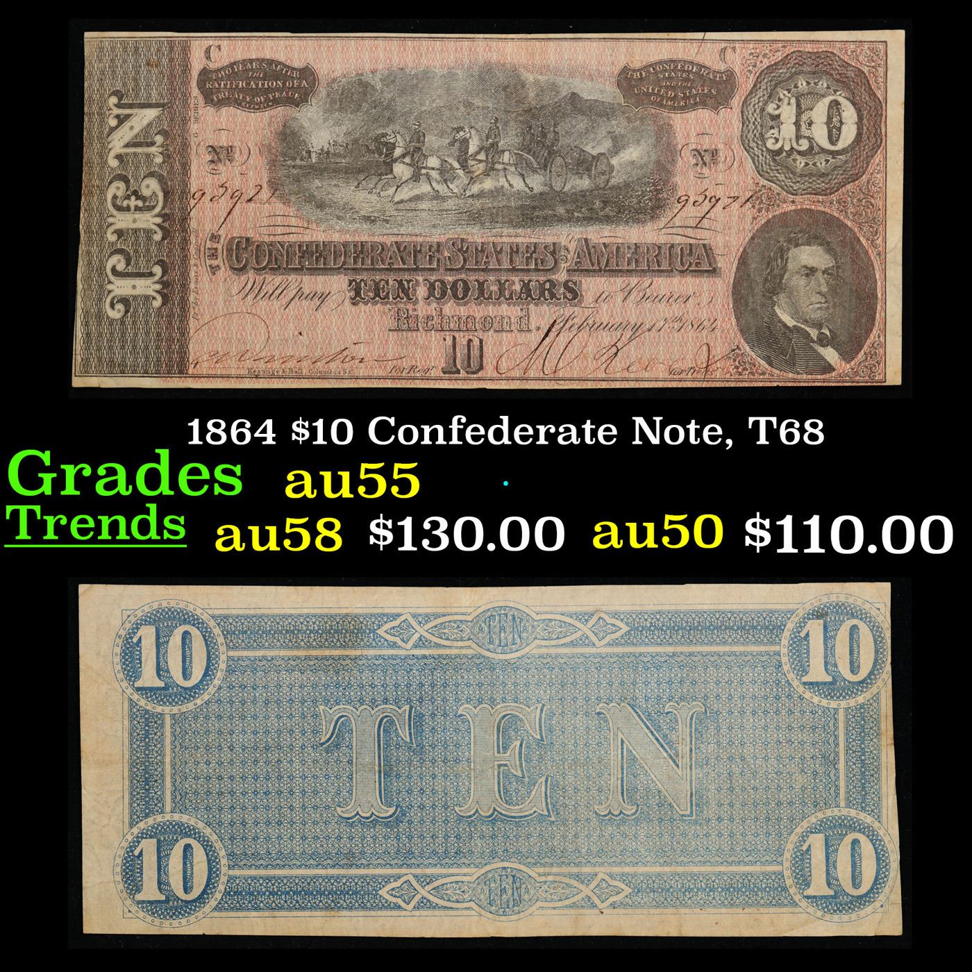 1864 $10 Confederate Note, T68 Grades Choice AU.