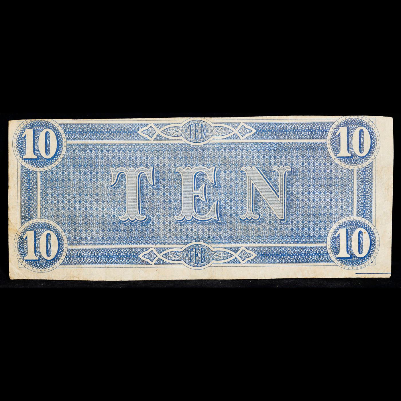 1864 $10 Confederate Note, T68 Grades Select AU