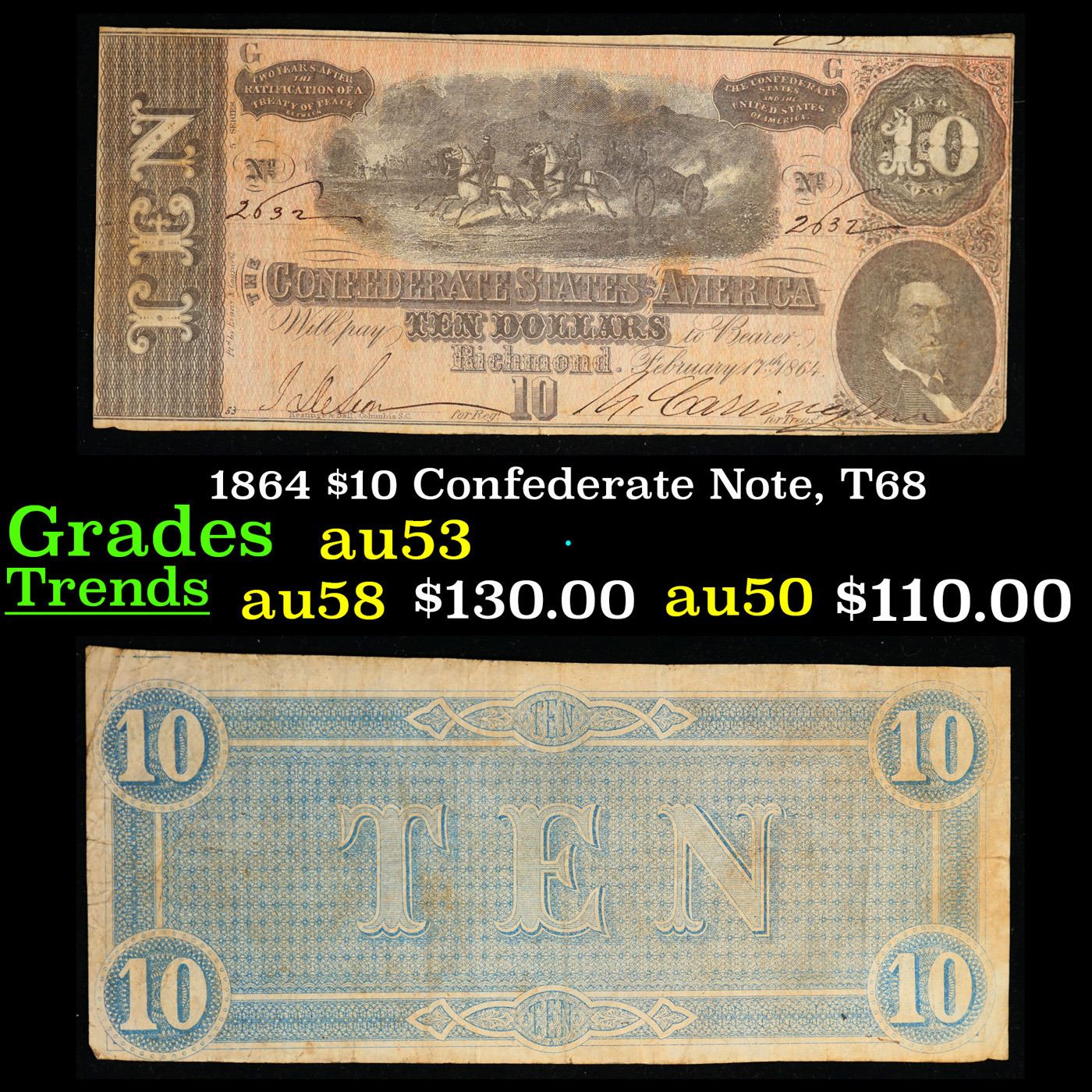 1864 $10 Confederate Note, T68 Grades Select AU.