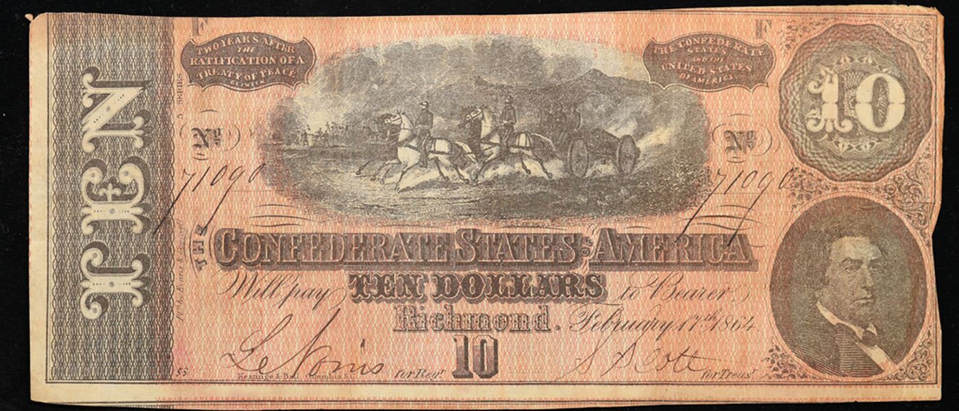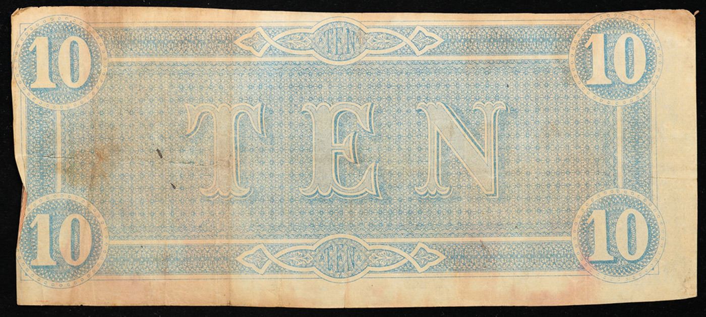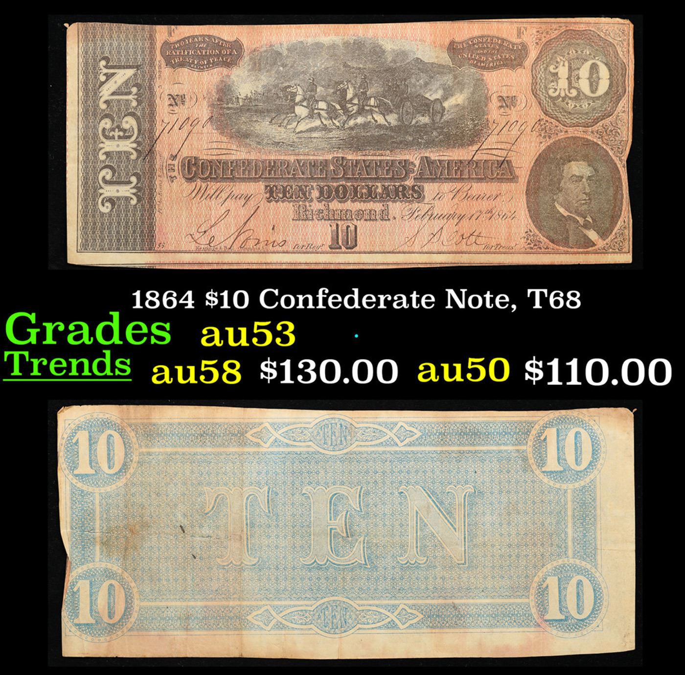 1864 $10 Confederate Note, T68 Grades Select AU