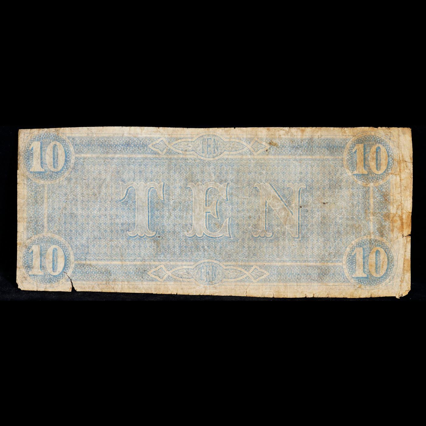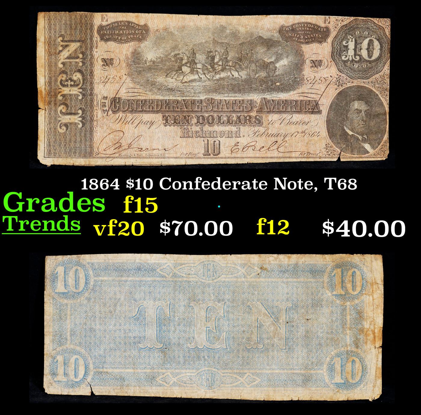 1864 $10 Confederate Note, T68 Grades f+