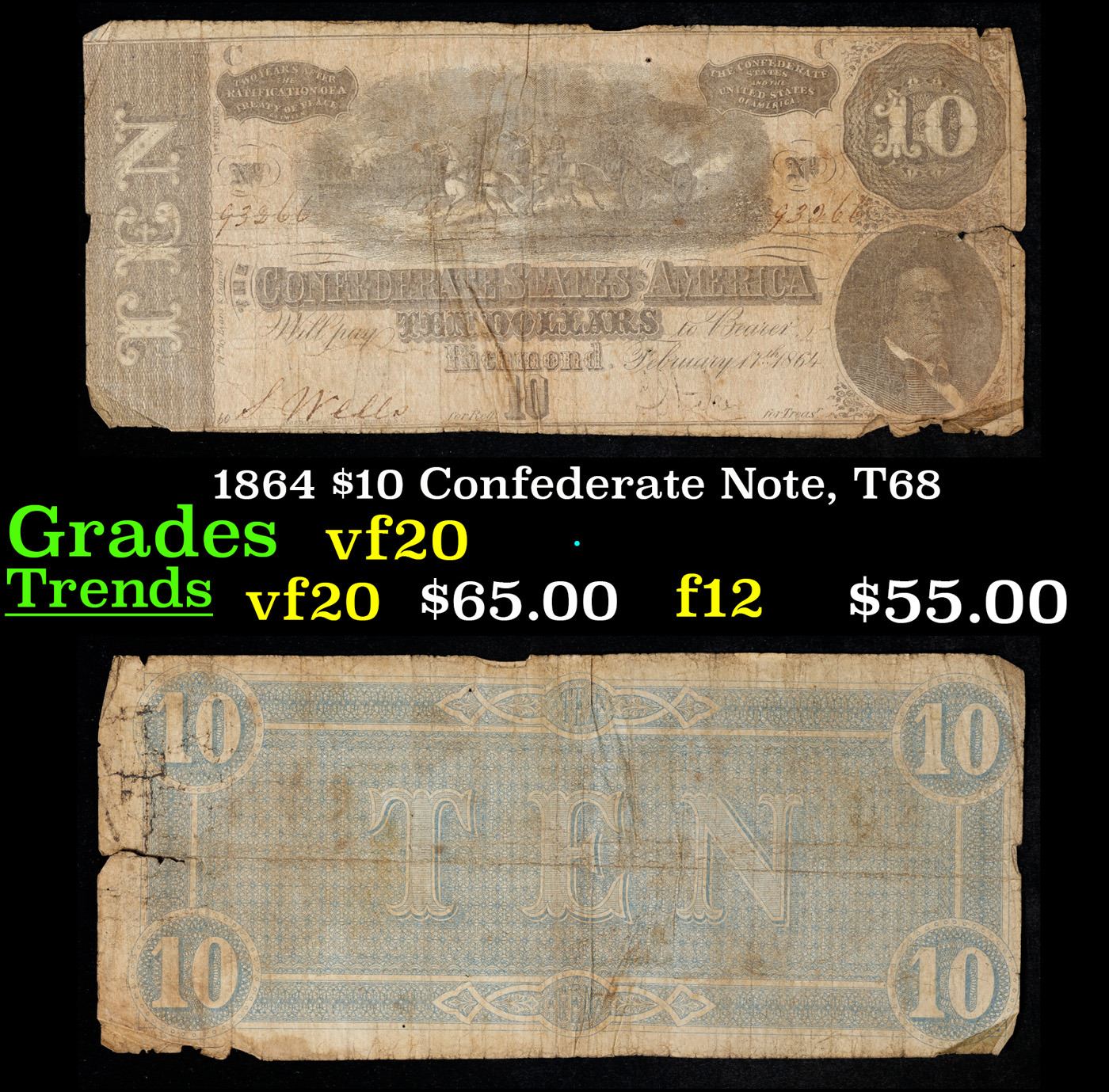 1864 $10 Confederate Note, T68 Grades vf, very fine