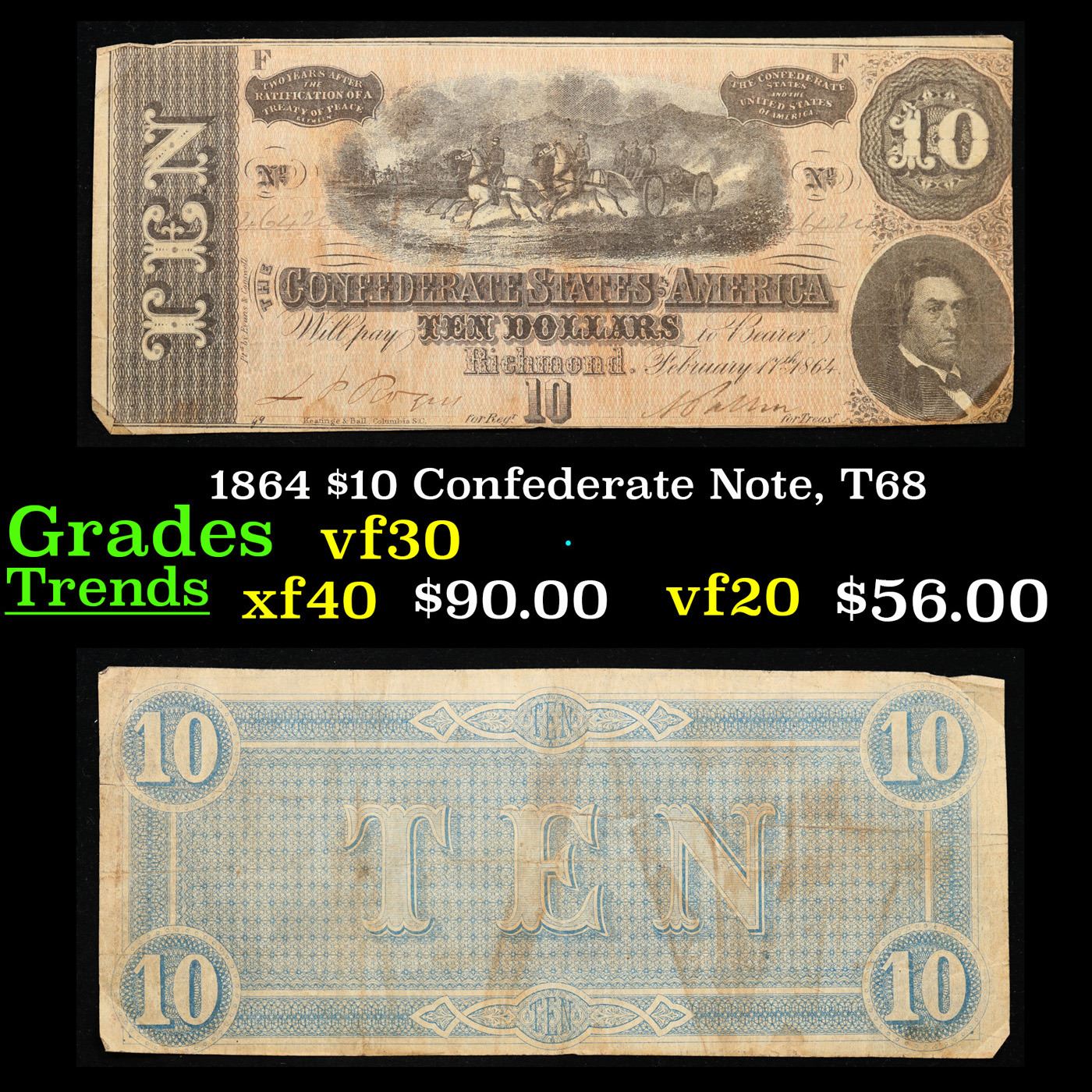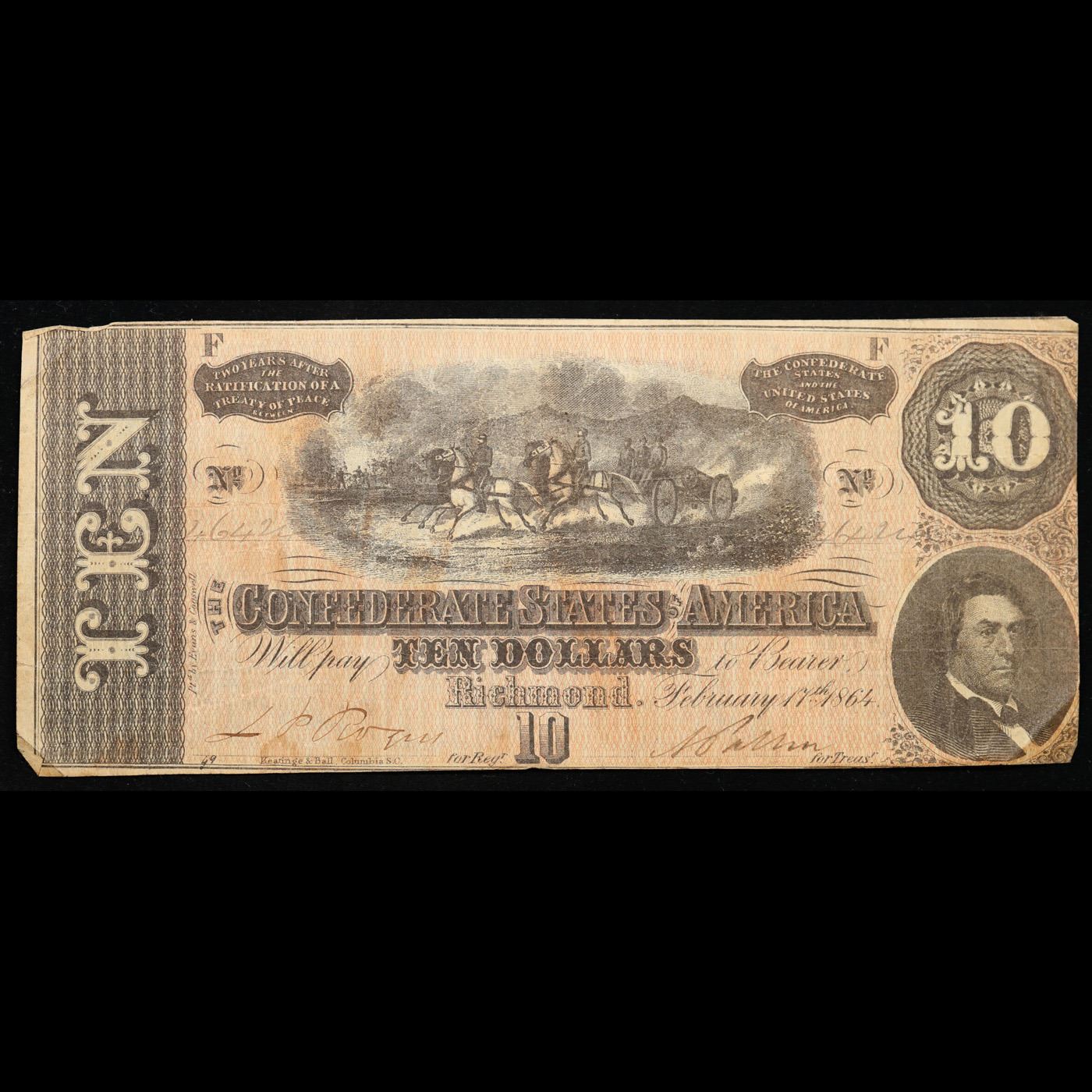 1864 $10 Confederate Note, T68 Grades vf++. 1935a $1 Silver Certificate Hawaii, Signatures of Julian & Morgenthau Grades. It was the darkest days of World War II, just after Pearl Harbor. Everybody in Hawaii was sitting on pins and needles. Were the Japanese preparing a massive invasion of the islands? If they did invade, they could use the millions of dollars in currency on the islands to buy war material. To thwart this, these $1 Federal Reserve Notes were sent to the islands. Each has a large HAWAII printed on the reverse. If the Japanese did invade, the currency would be demonetized. After the threat passed, most of these "Hawaii" Notes were destroyed. Today they're hard to find.