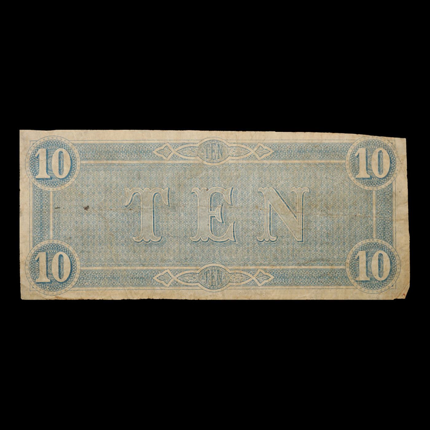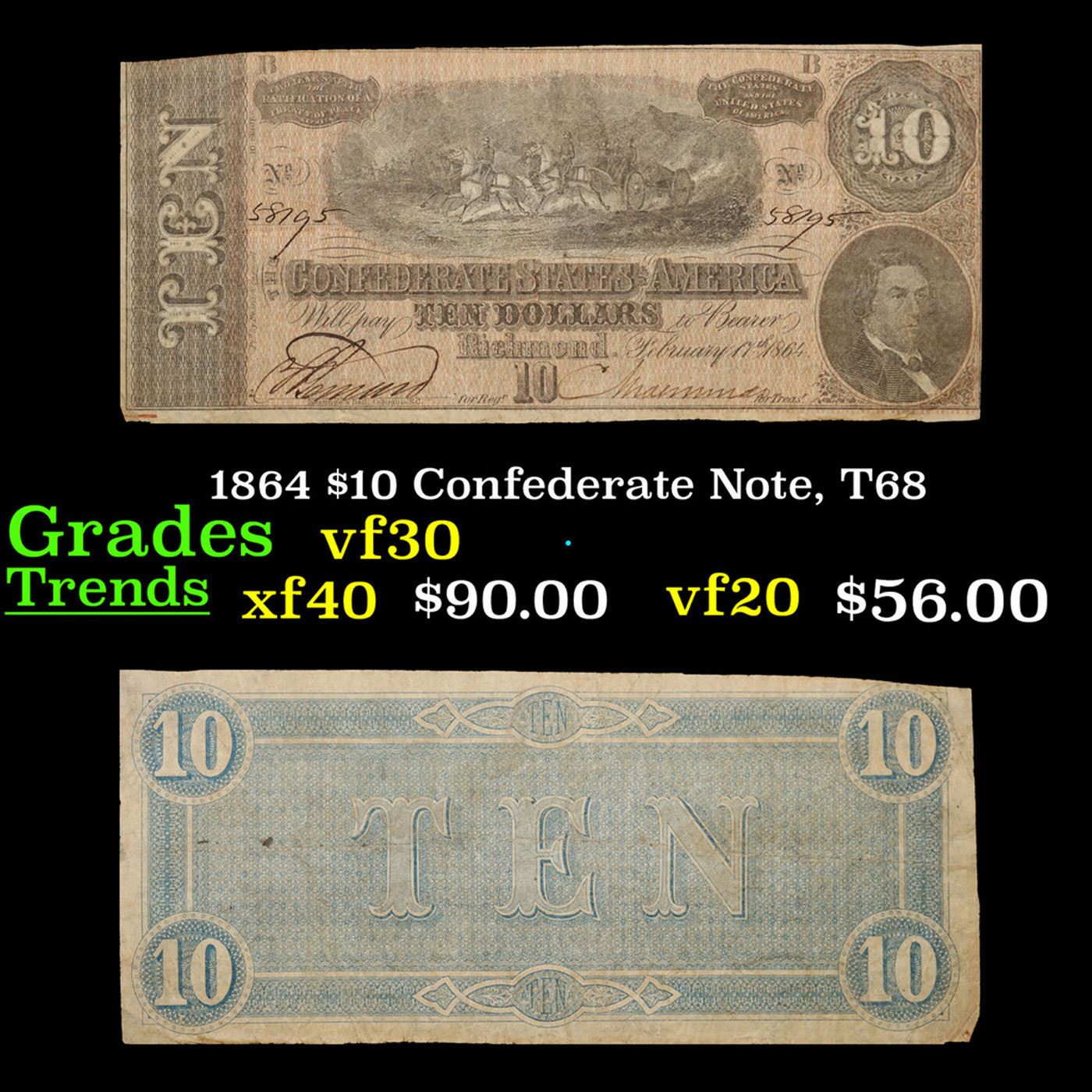 1864 $10 Confederate Note, T68 Grades vf++
