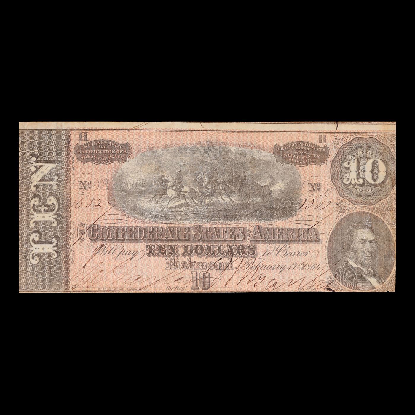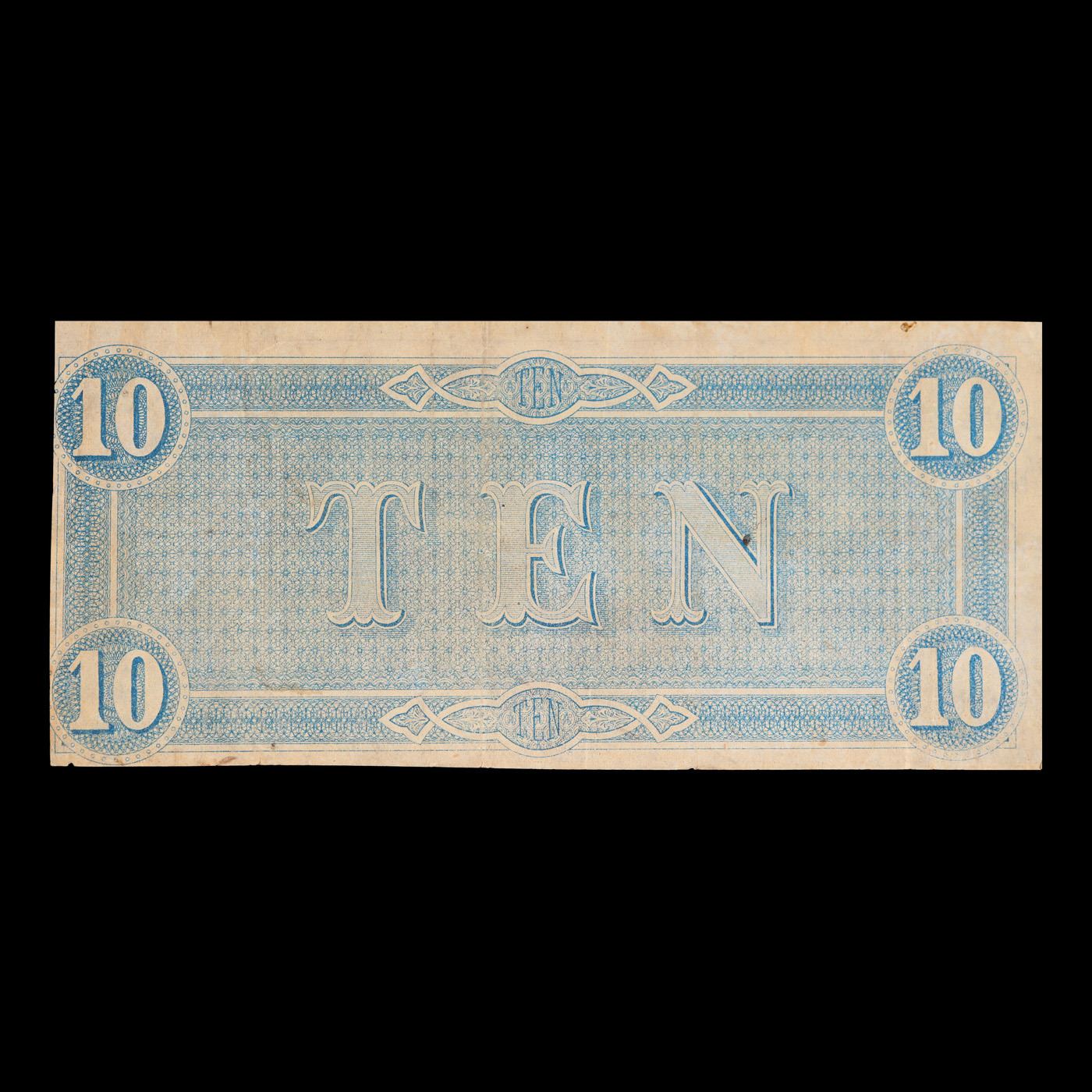 1864 $10 Confederate Note, T68 Grades vf++