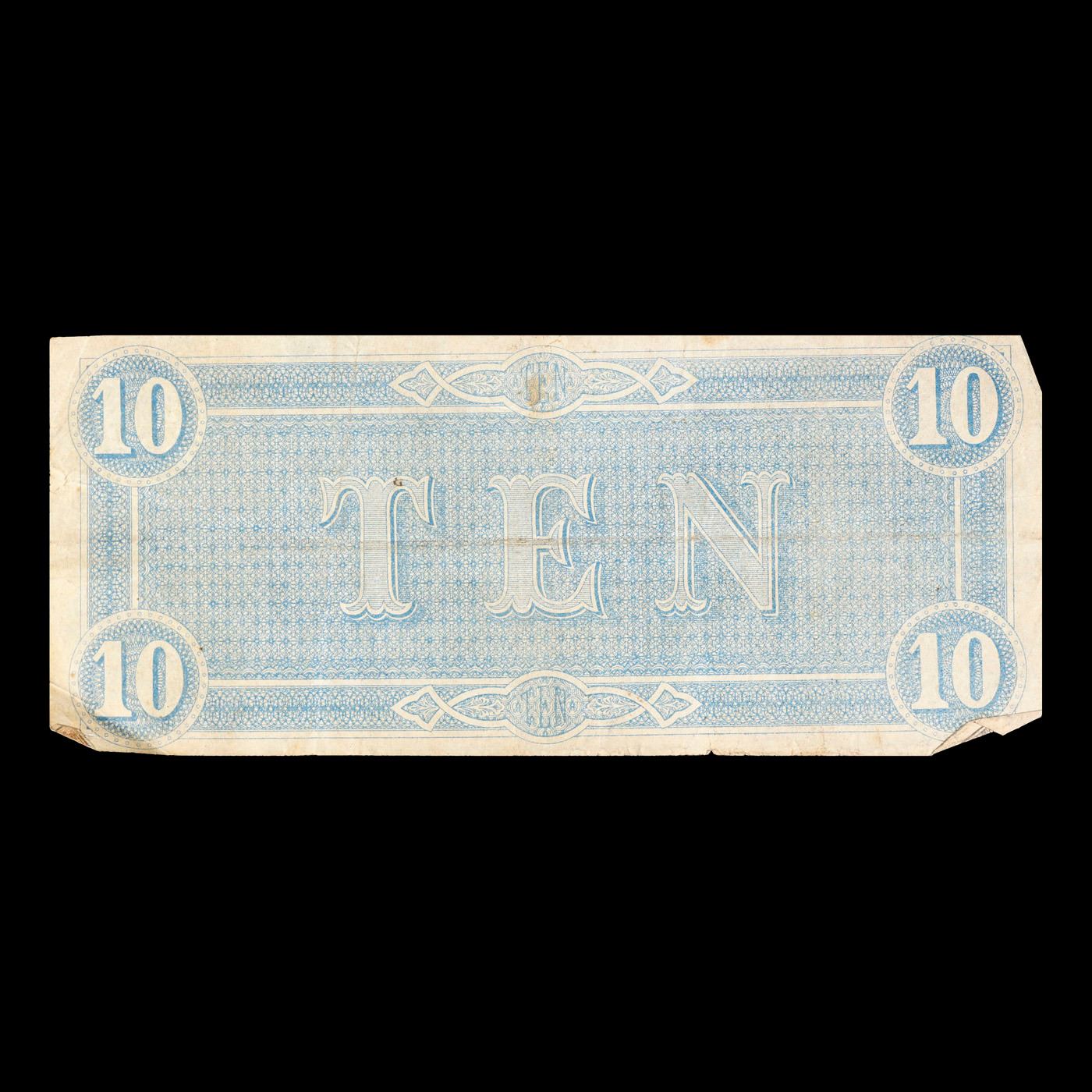 1864 $10 Confederate States Note, T68 Grades Choice AU