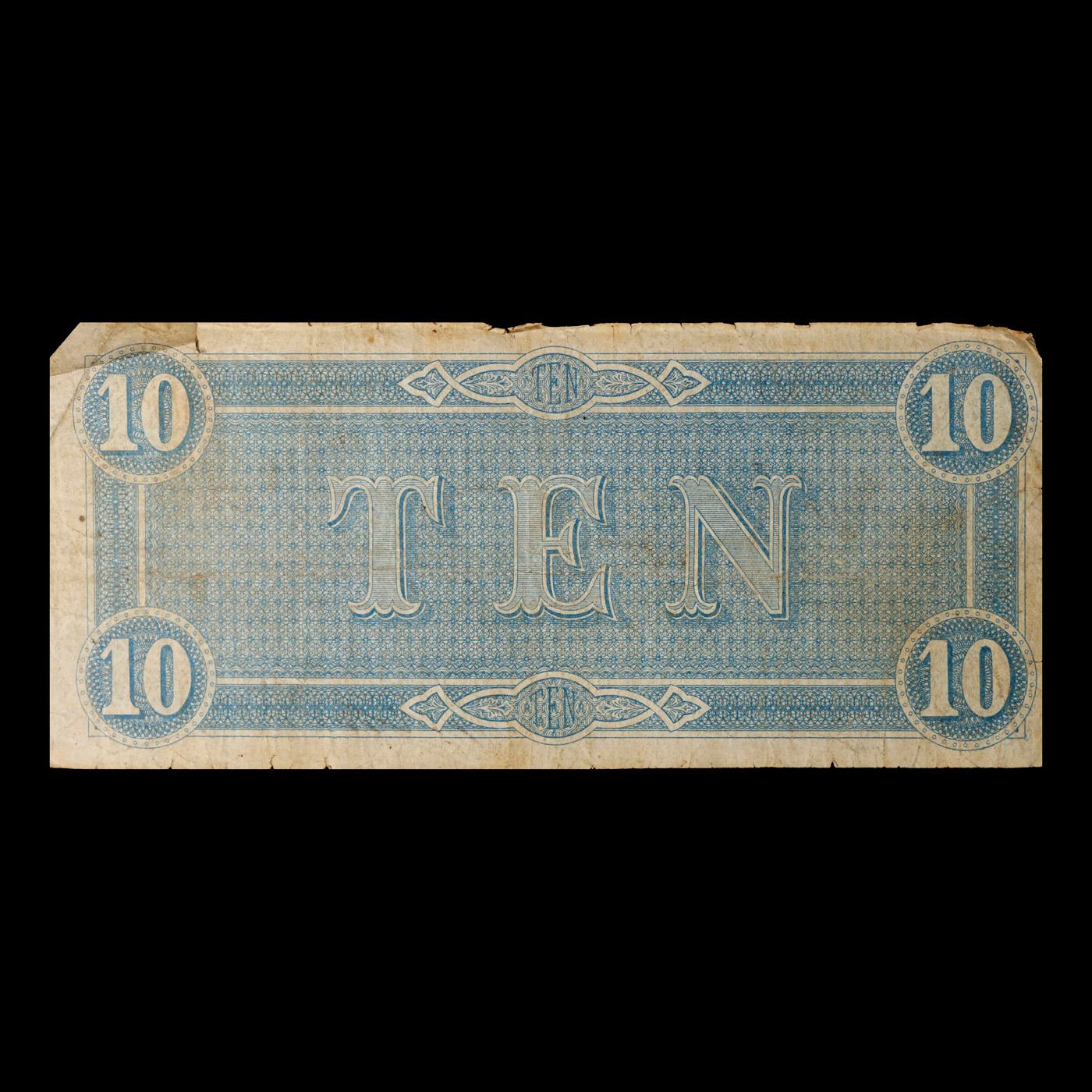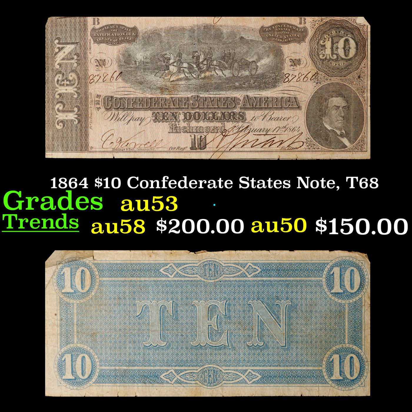 1864 $10 Confederate States Note, T68 Grades Select AU