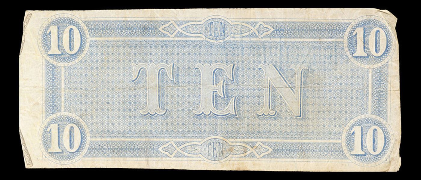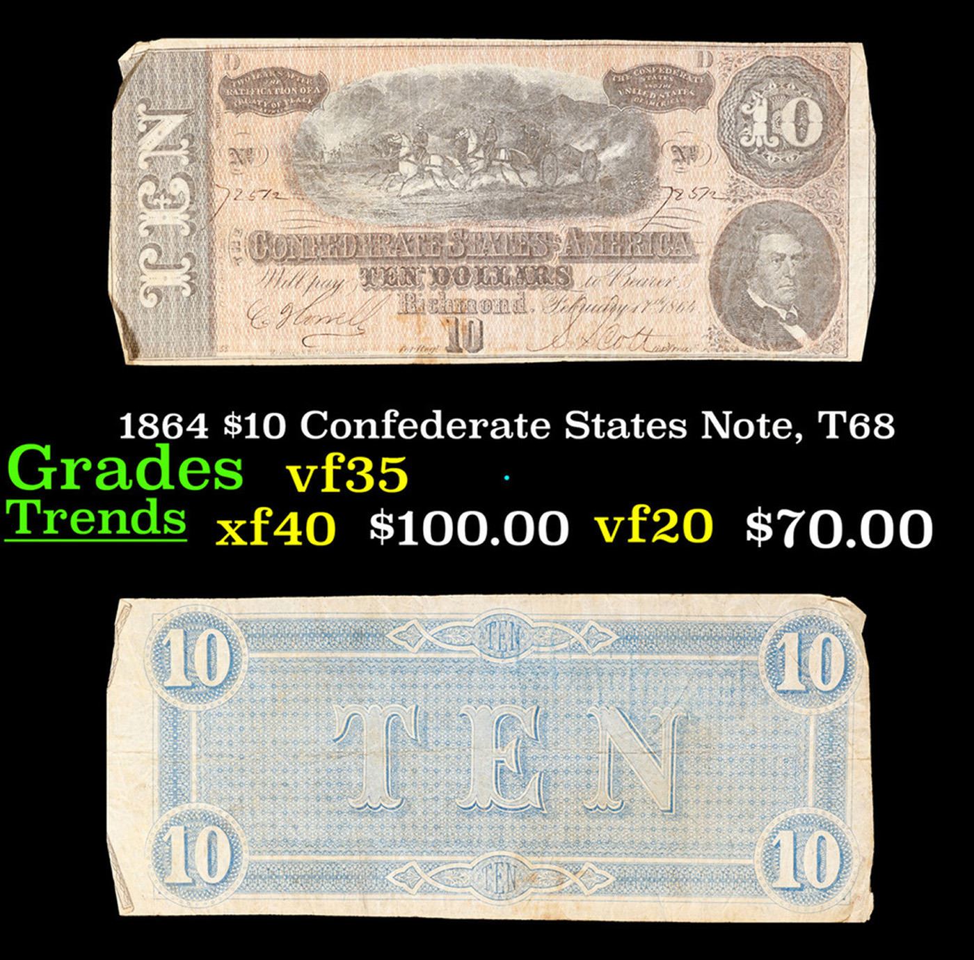 1864 $10 Confederate States Note, T68 Grades vf++