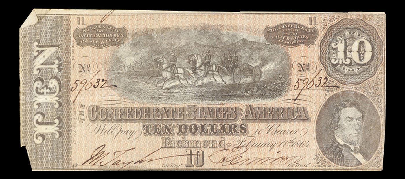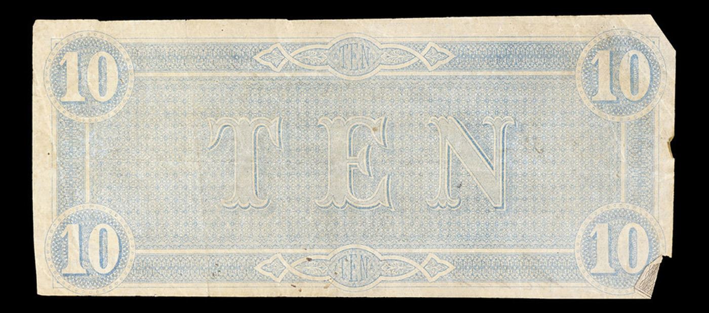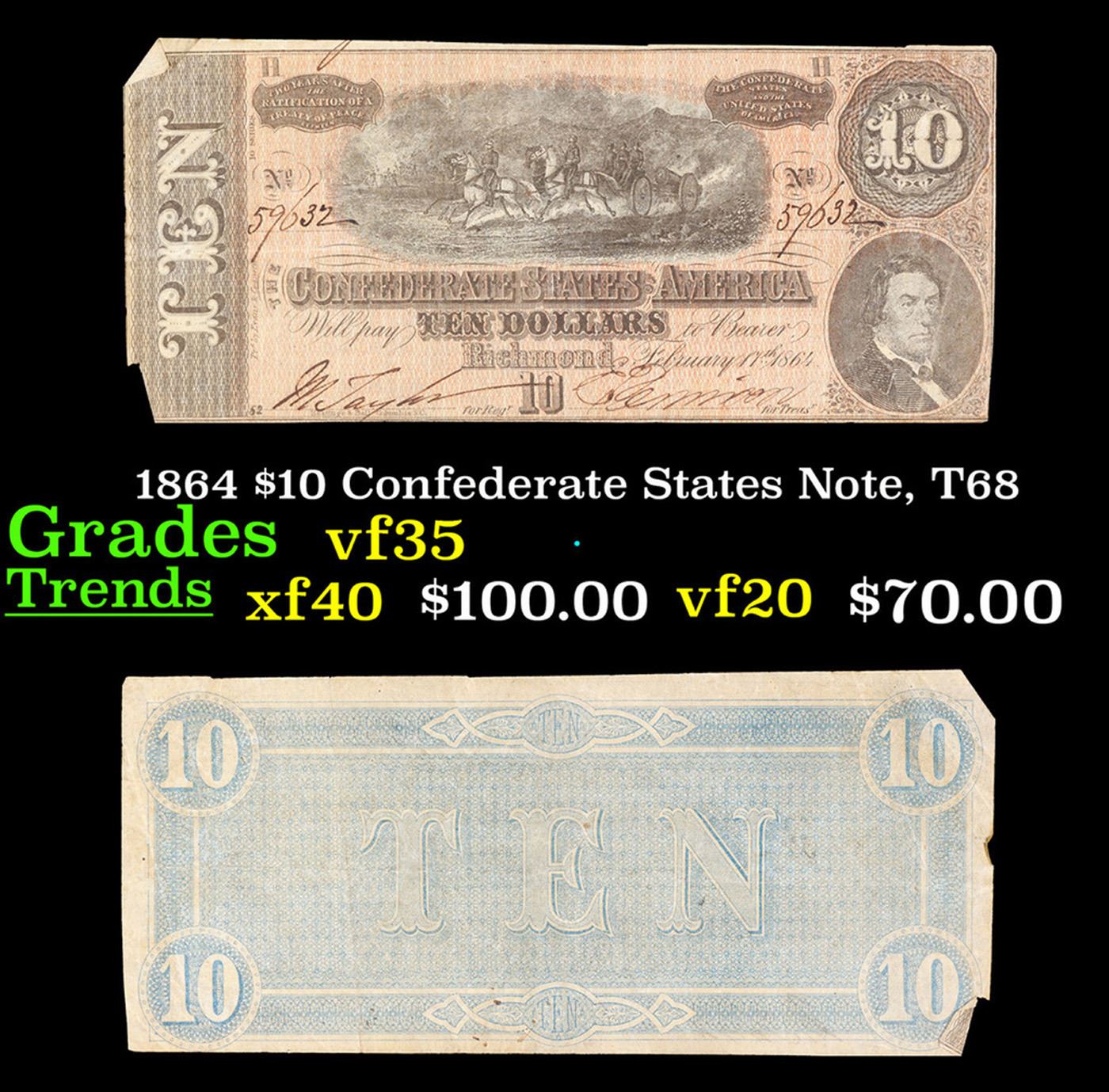 1864 $10 Confederate States Note, T68 Grades vf++