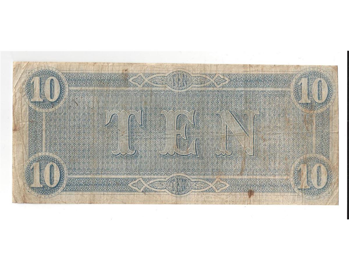 One 1864 $10 Confederate States of America Bank Note.