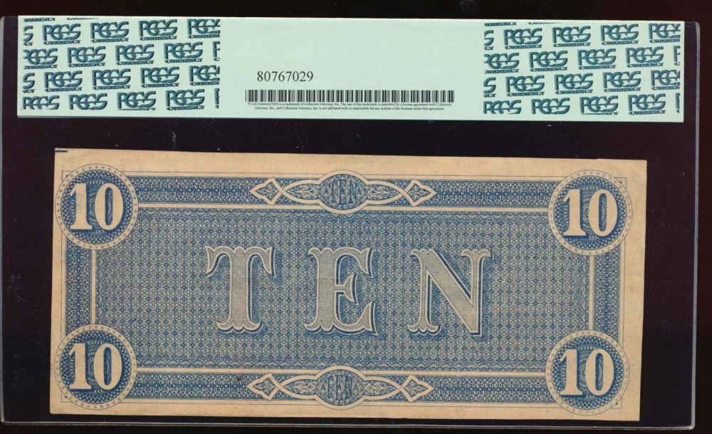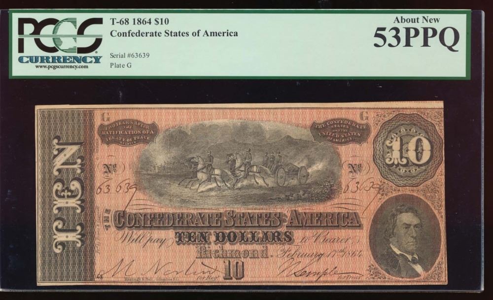One 1864 $10 Confederate States of America Note PCGS 53PPQ.