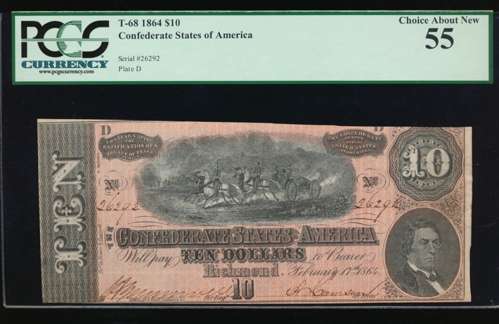One 1864 $10 Confederate States of America Note PCGS 55.