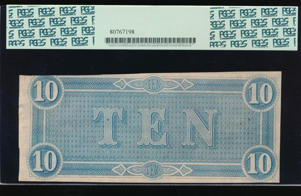 One 1864 $10 Confederate States of America Note PCGS 55.