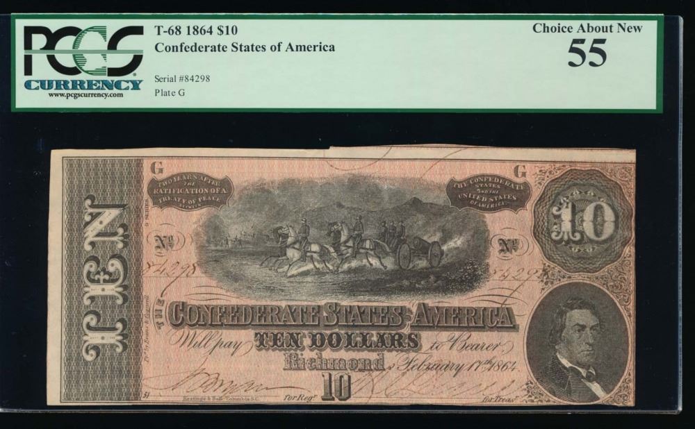 One 1864 $10 Confederate States of America Note PCGS 55.