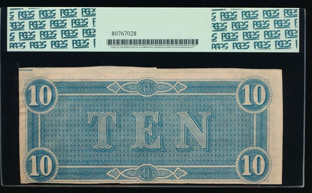 One 1864 $10 Confederate States of America Note PCGS 55.