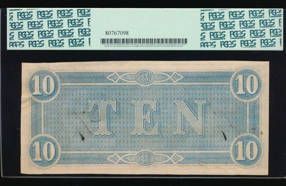 One 1864 $10 Confederate States of America Note PCGS 58PPQ.