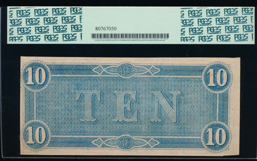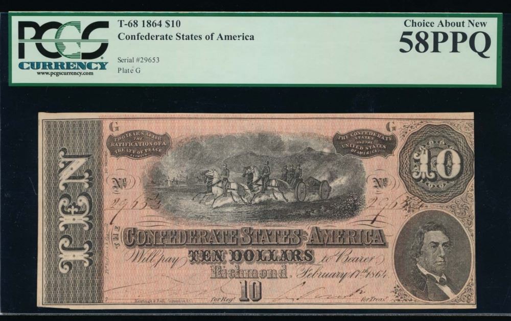 One 1864 $10 Confederate States of America Note PCGS 58PPQ.