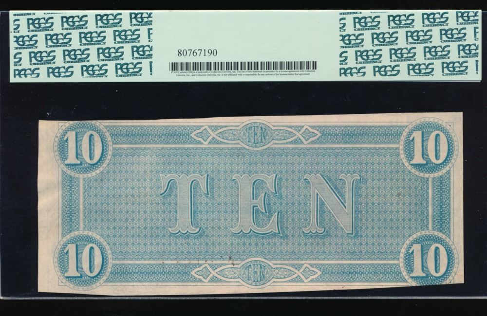 One 1864 $10 Confederate States of America Note PCGS 60.