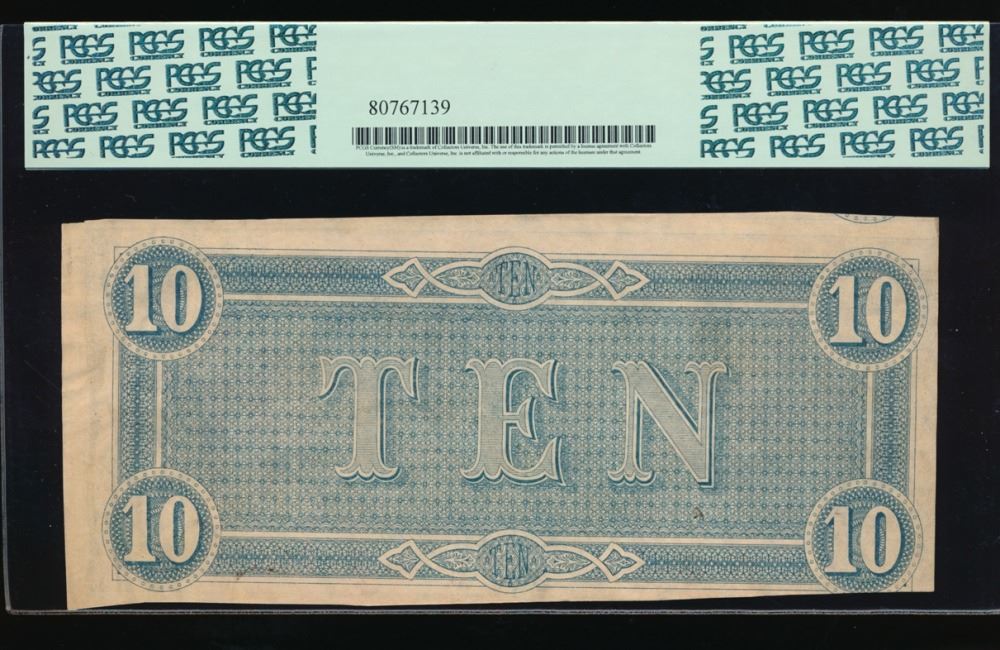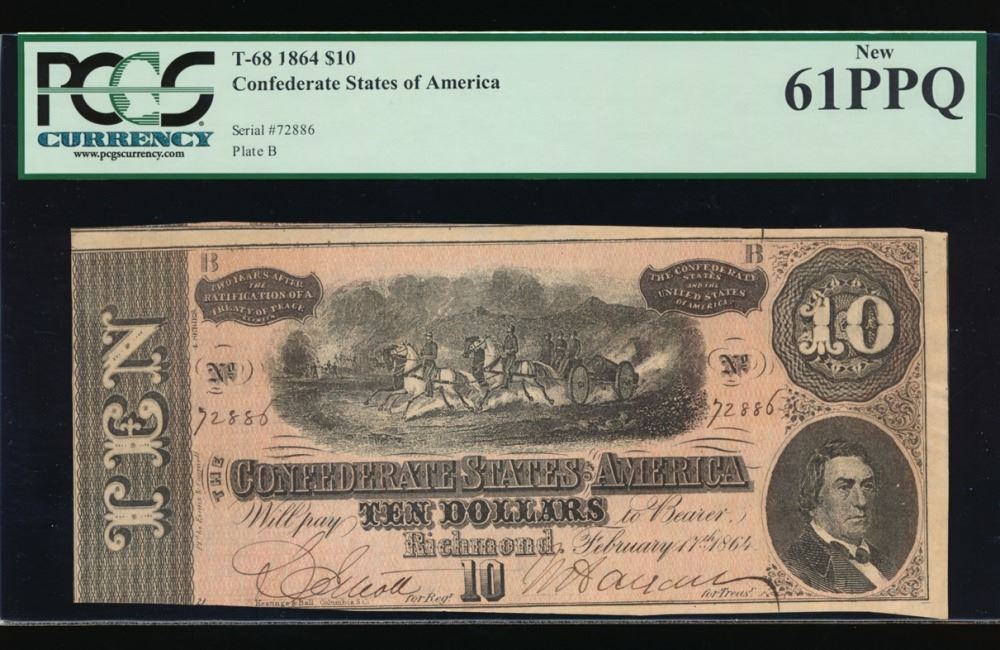 One 1864 $10 Confederate States of America Note PCGS 61PPQ.