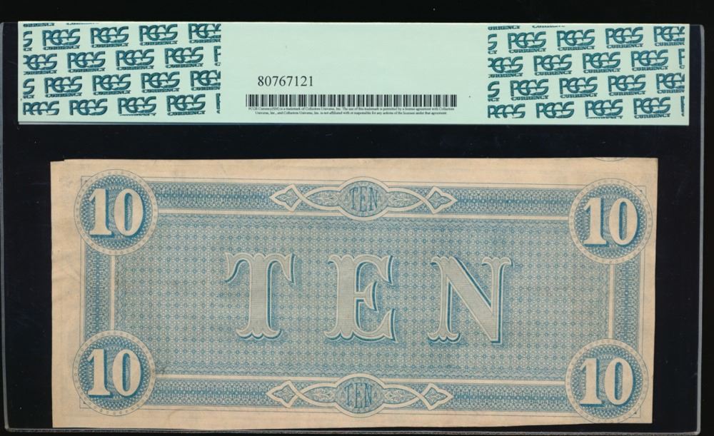 One 1864 $10 Confederate States of America Note PCGS 62PPQ.