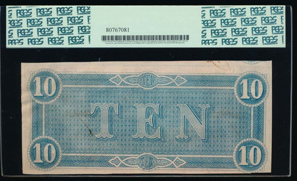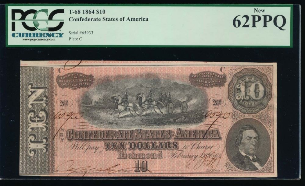 One 1864 $10 Confederate States of America Note PCGS 62PPQ.