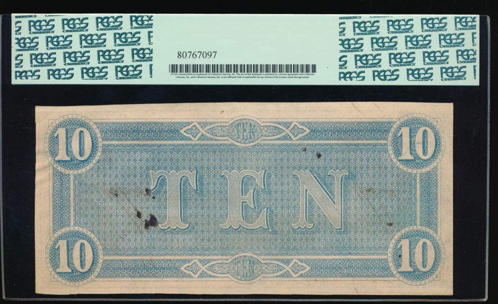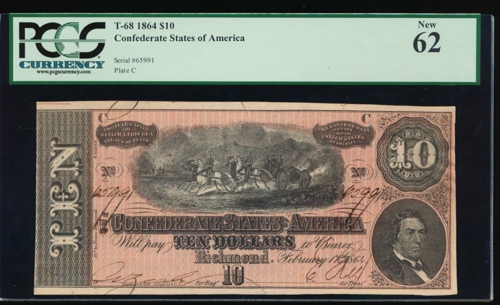 One 1864 $10 Confederate States of America Note PCGS 62.