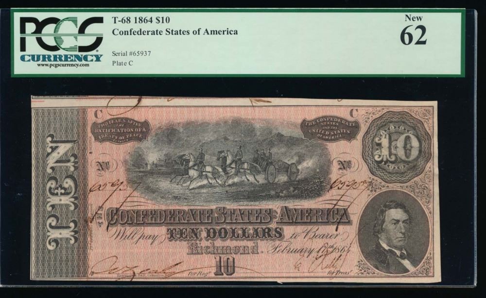 One 1864 $10 Confederate States of America Note PCGS 62.