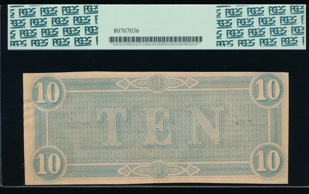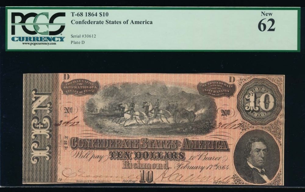 One 1864 $10 Confederate States of America Note PCGS 62.