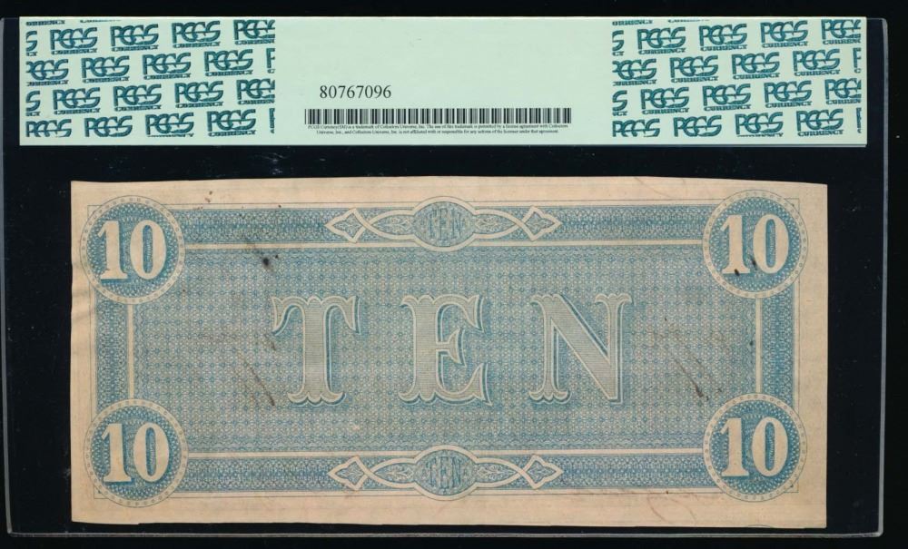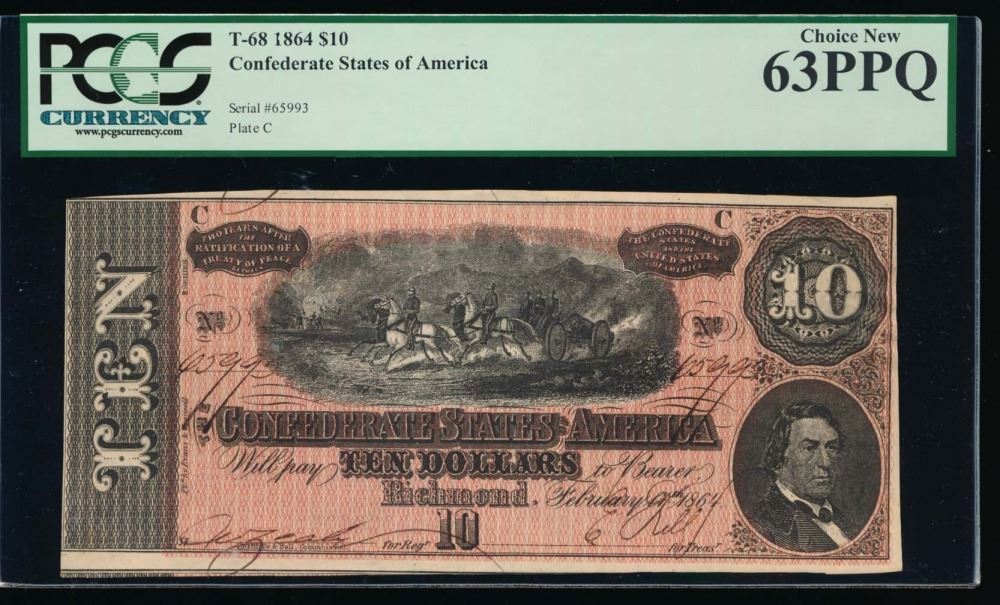 One 1864 $10 Confederate States of America Note PCGS 63PPQ.