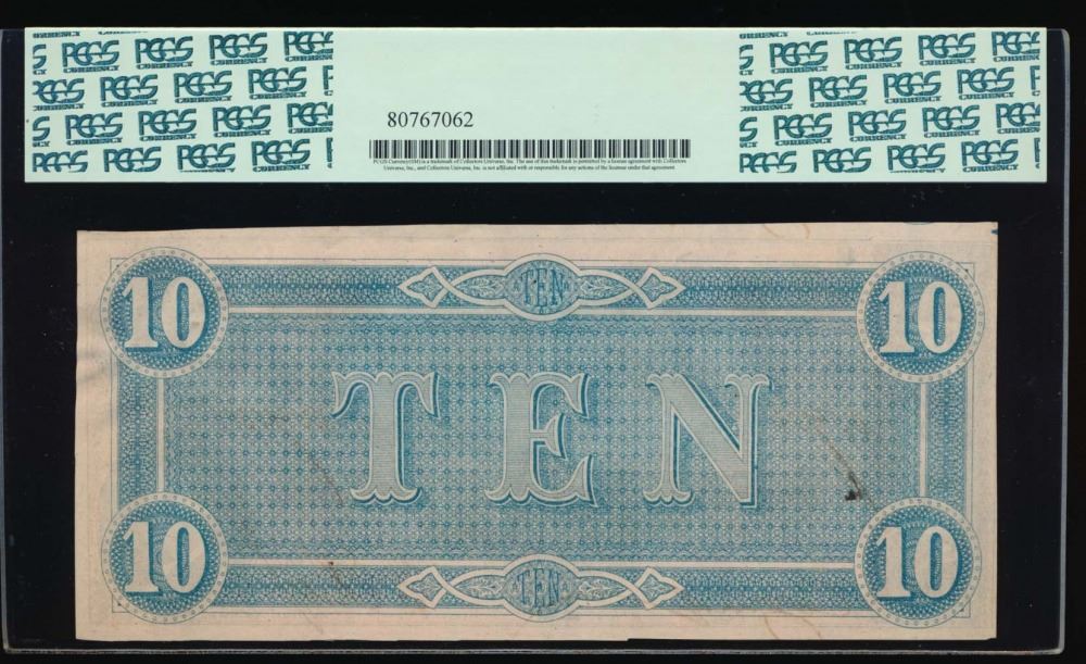 One 1864 $10 Confederate States of America Note PCGS 64PPQ.