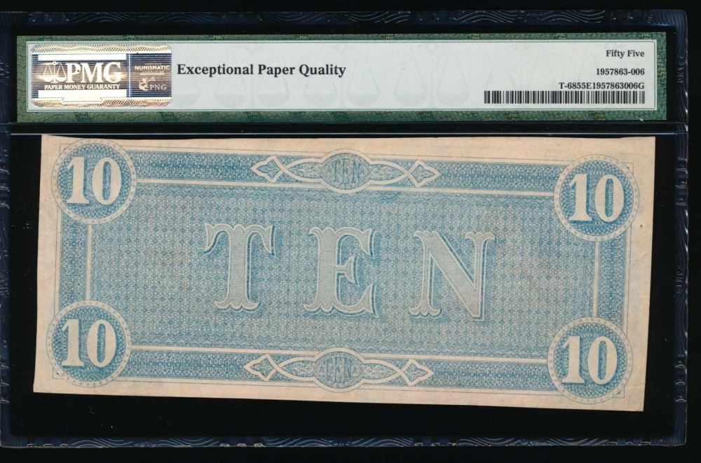 One 1864 $10 Confederate States of America Note PMG 55EPQ.