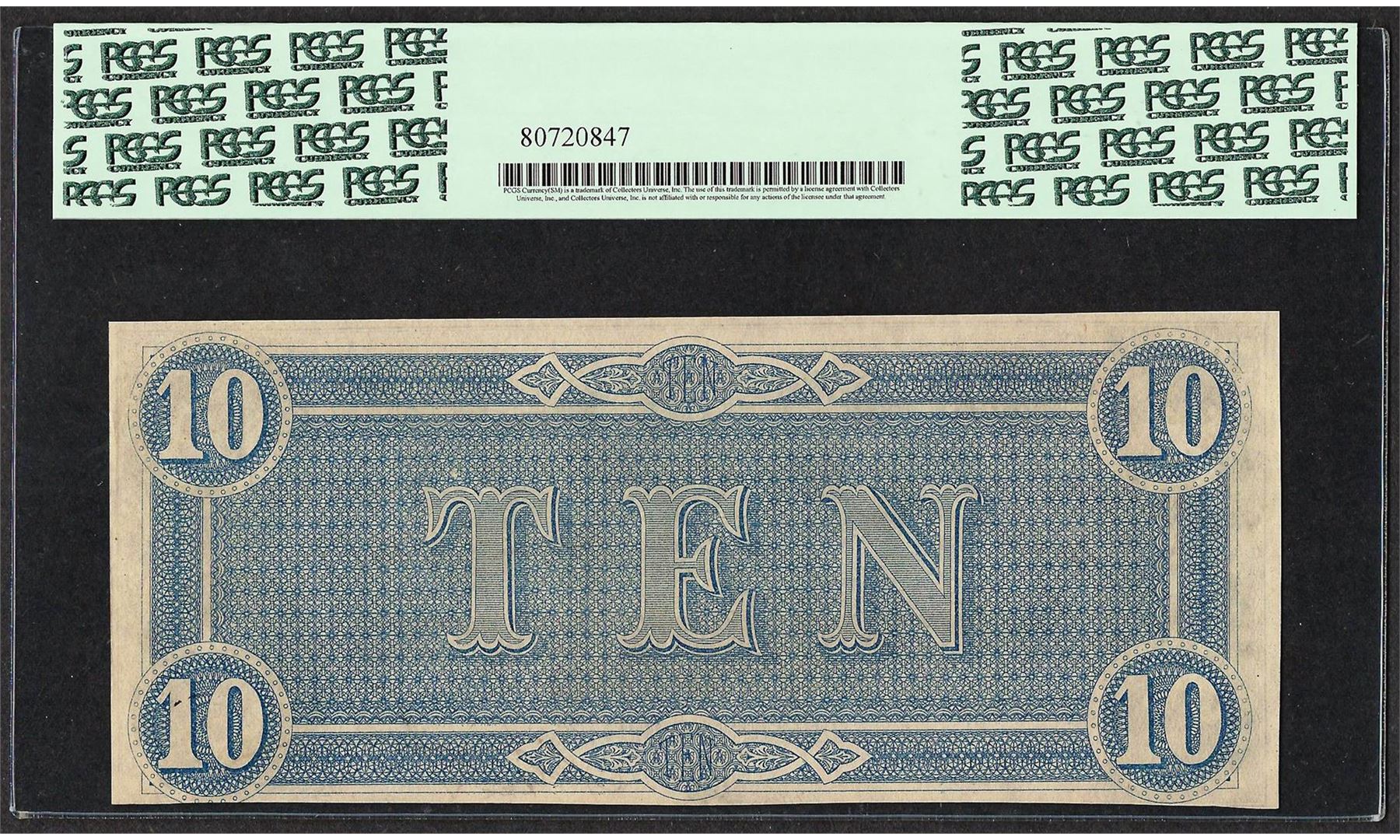 One 1864 $10 Confederate States of America Note T-68 PCGS New 61PPQ. PCGS Graded.